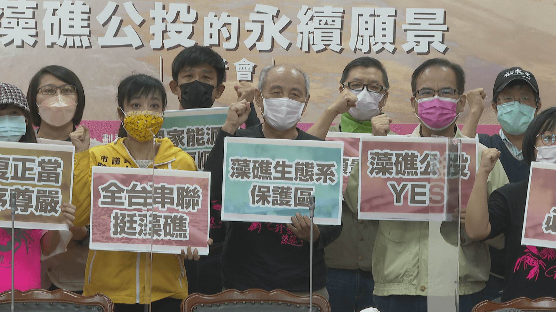 王美花、潘忠政隔空交火,環團同時集結全台21位環保人士,宣讀藻礁公投願景宣言大力催票。環保人士:「我們相信,保護藻礁生態系、保存世界級自然地景,不會讓能源轉型失敗。」公投投票倒數3天,三接攻防雙方繃緊神經。