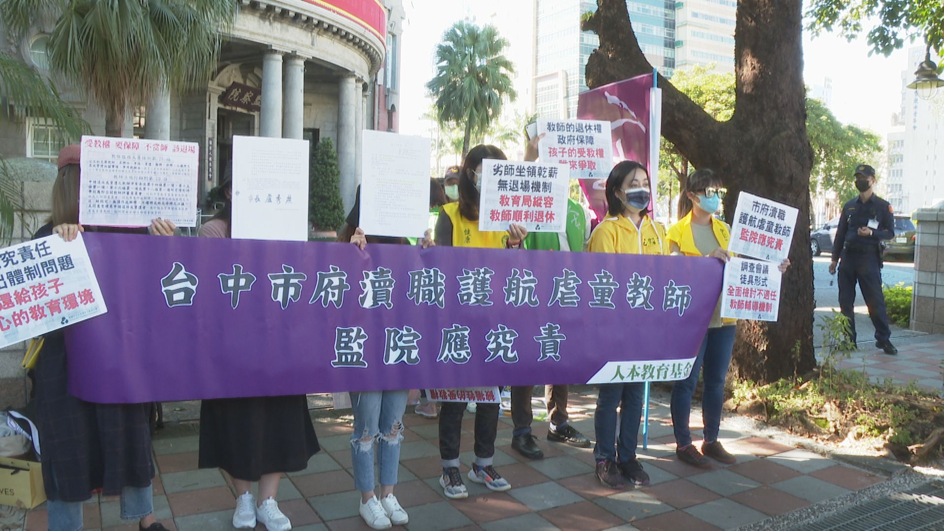 家長們懷疑,台中市政府惡意包庇女教師才讓小孩子深受其害,要求監察院介入調查,改善不適任教師停聘規定,不讓類似情況再發生。