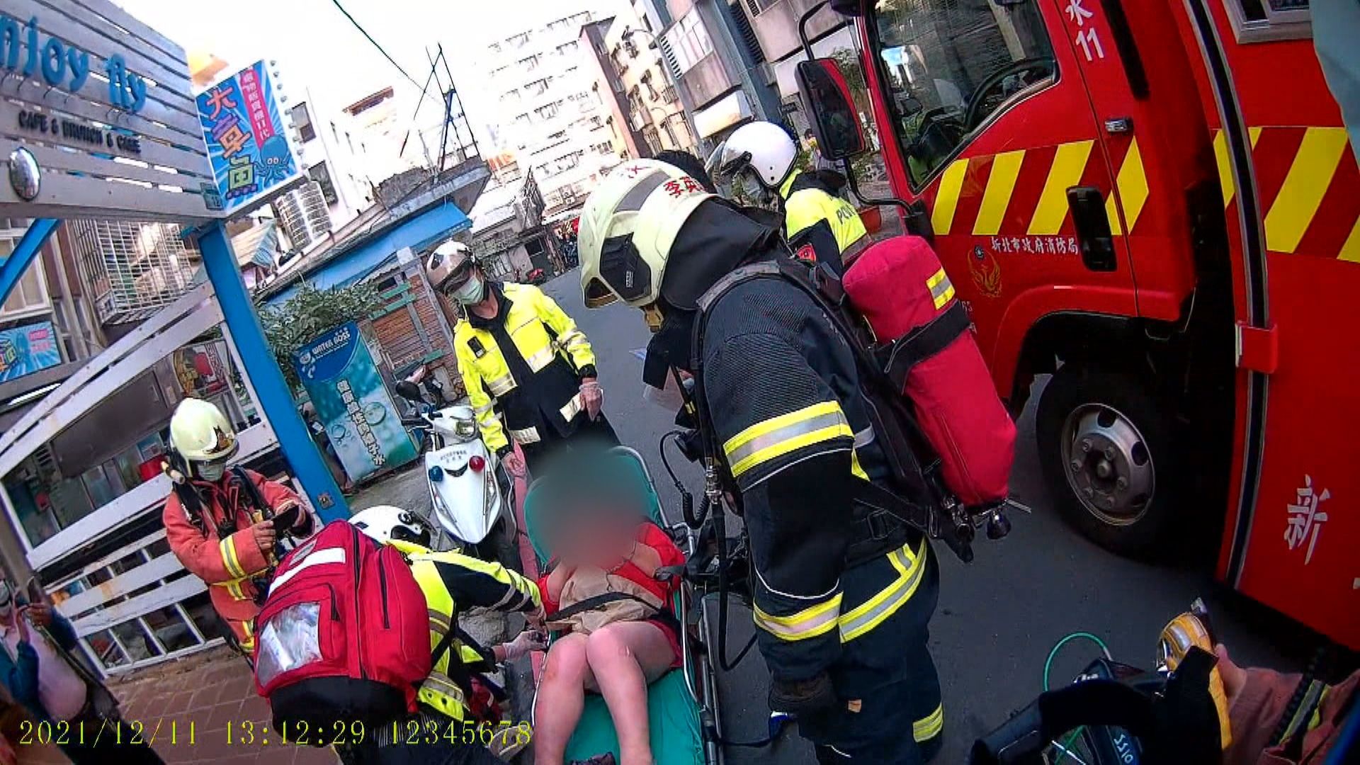 消防員費了好大功夫,才找到受傷的紅衣婦人,但她被氣爆炸傷,雙腿紅腫破皮,嚇到驚魂未定。氣爆意外發生在11日下午1點多,新北市淡水英專路,這裡白天是市場,晚上則是夜市,淡江大學就在附近,不少大學生出門吃飯,全都停下腳步在旁圍觀。