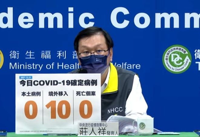 中央流行疫情指揮中心21日公布國內新增10例COVID-19移入確定病例;另確診個案中無新增死亡。另外,針對指揮中心於20日公布1名疑似本土個案,發言人莊人祥指出,經過第3次採檢後,PCR結果為陰性,已排除為確診個案。
