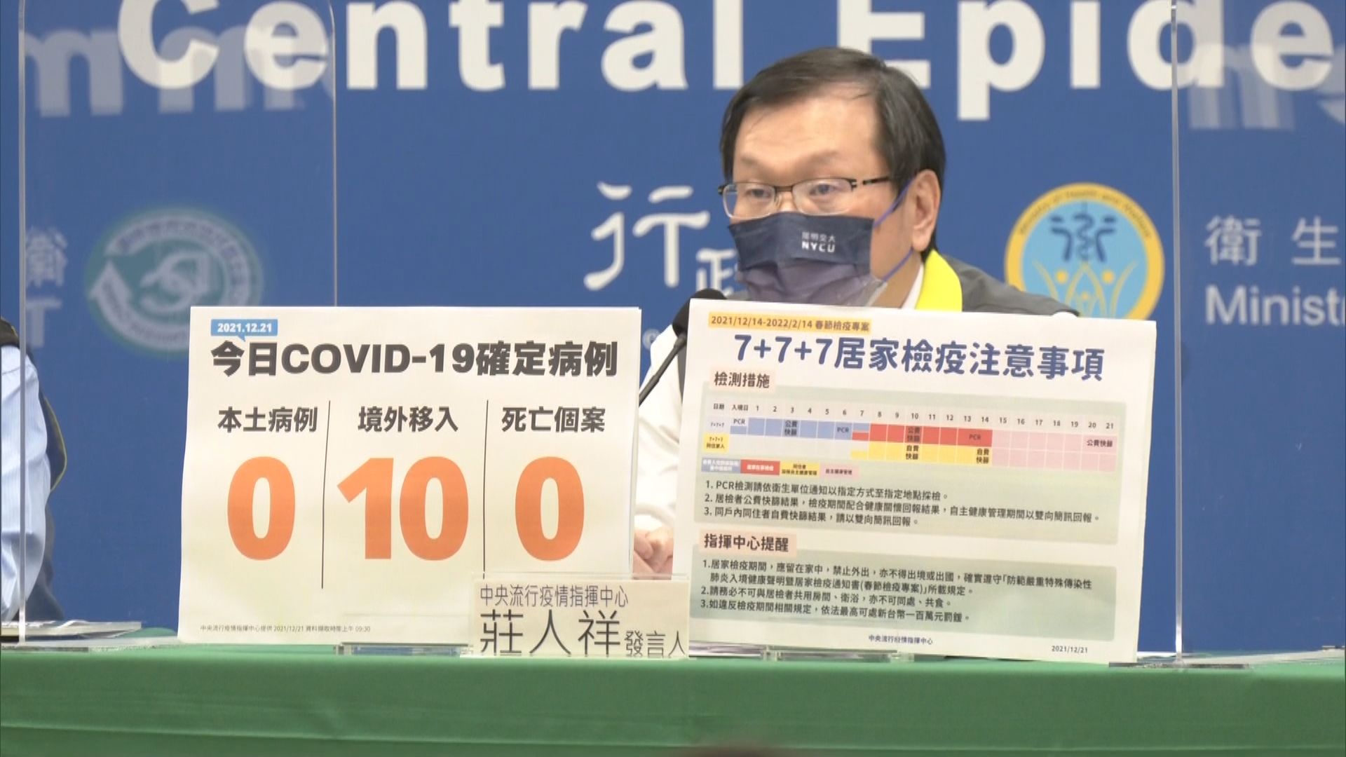 21日再度新增10名境外移入,但幸好本土疫情沒再擴大,前1天擔心的疑似個案,三採陰性,排除感染新冠肺炎可能。中央流行疫情指揮中心發言人莊人祥:「後續2次的採檢PCR也都是陰性,再加上血清檢驗的一個抗體,是不是之前有感染過,這個部分是陰性的,所以是把她排除。」
