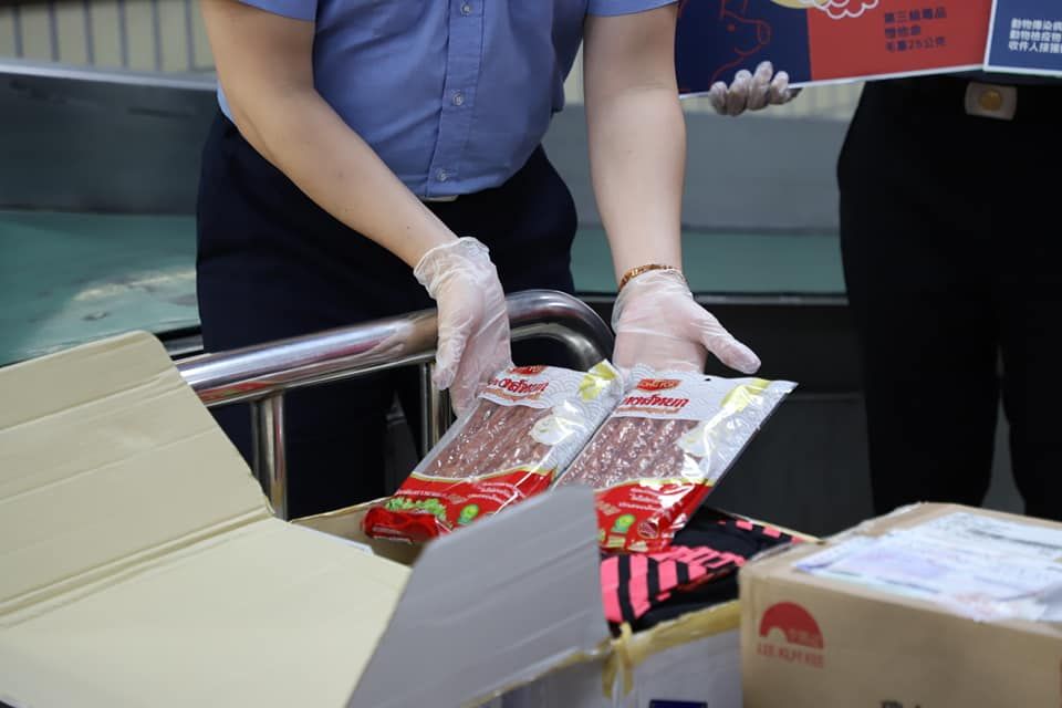 農委會主委陳吉仲22日發文表示,家畜衛生試驗所在台南郵局查獲一件來自泰國的包裹有夾帶豬肉香腸,其中檢出非洲豬瘟病毒核酸,與中國武漢病毒株相似度達100%,而這也是台灣第一次從泰國的郵包中查到含非洲豬瘟的豬肉製品。
