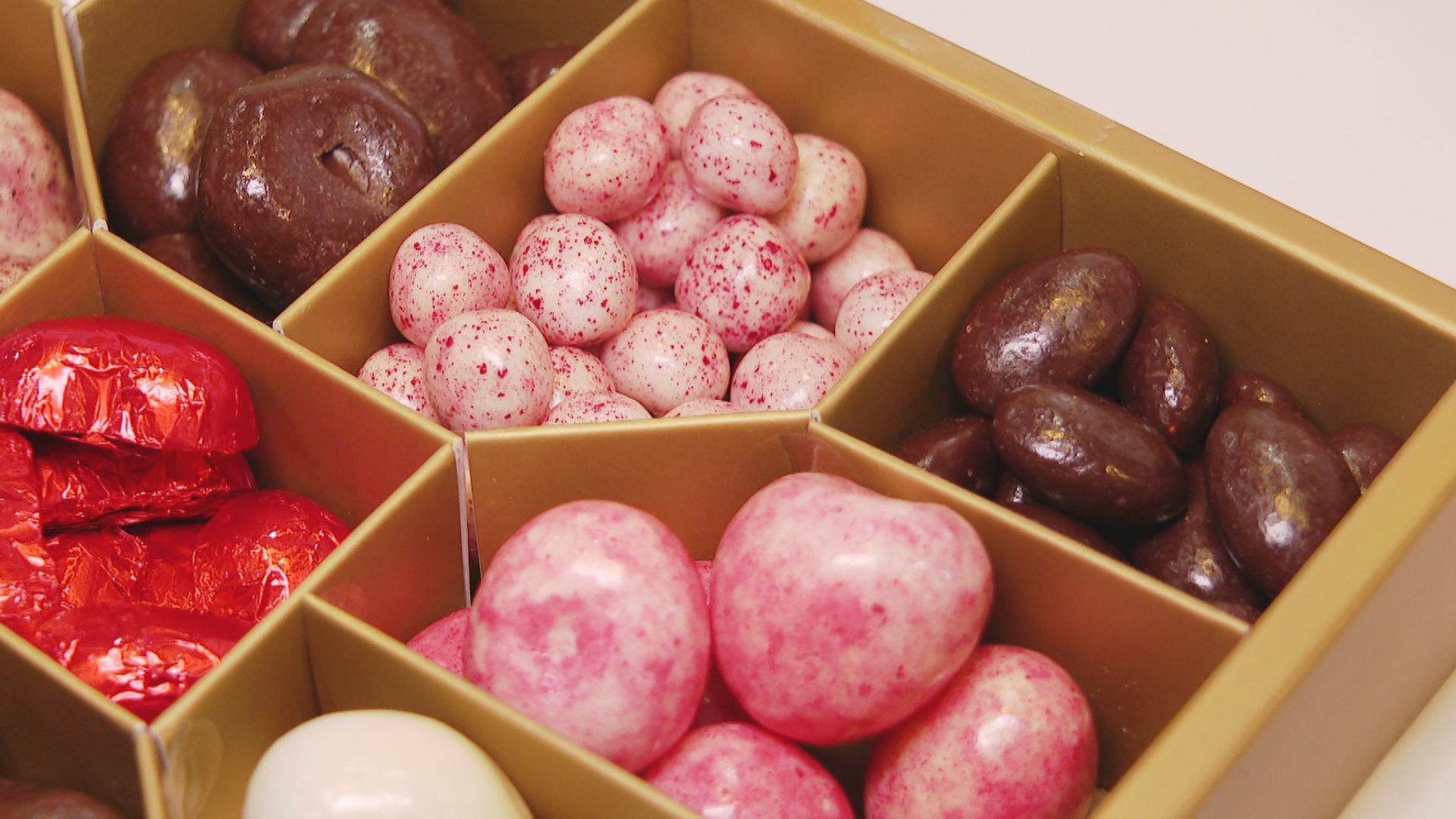 巧克力業者黃先生介紹:「上面這個紫色的是藍莓巧克力,藍莓是我們研磨過的藍莓撒在上面。」一顆顆巧克力,就像寶石般,閃閃發亮,這盒來自立陶宛的巧克力,一天可以賣出兩百盒,不過現在有不肖業者,狂蹭熱度。