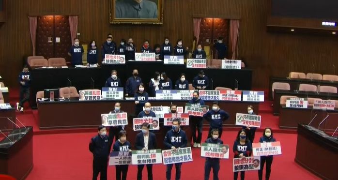 不過,國民黨團在表決時突然占領主席台,將游錫堃、祕書長林志嘉推到一邊,10點19分游錫堃宣布討論事項表決結果後,隨即宣布休息,並離開議場。