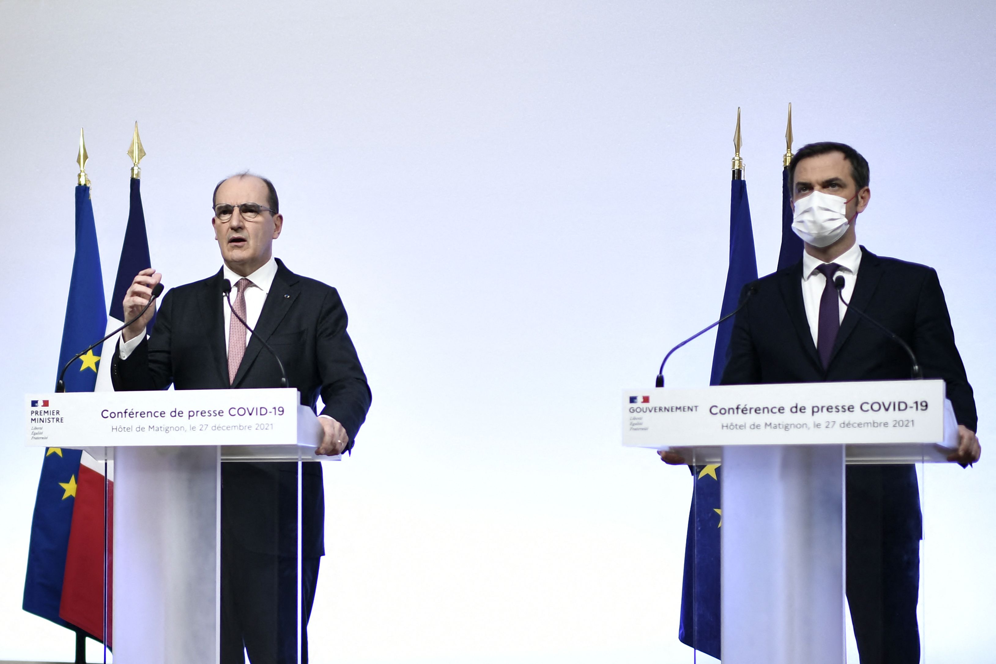 法國總理卡斯泰(Jean Castex)與衛生部長維宏(Olivier Veran)於當地時間週一(27日)下午召開聯合記者招待會,除了宣布企業的居家辦公令外,還預告各省長將下令,要求民眾在戶外也必須配戴口罩,也宣導接種兩劑疫苗後滿3個月的民眾,應儘快接種第3劑。