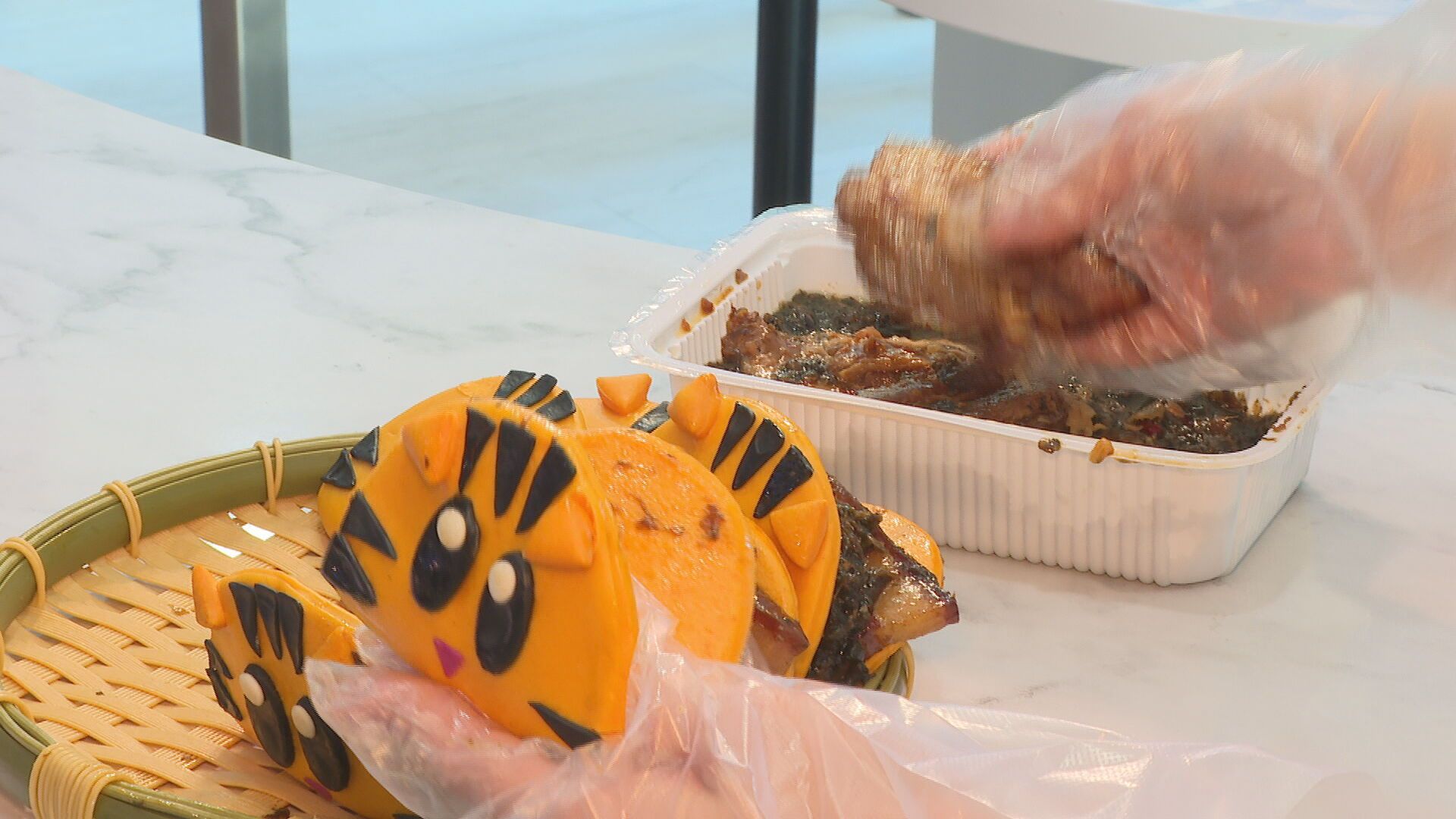 佛跳牆煮滾後冒出陣陣香氣,用湯匙一撈,還能撈出整隻雞和鮑魚等食材,一旁還有現包虎頭造型刈包!超商在農曆新年檔期推年菜搶商機,統一超商企劃部長戴琪甄表示:「台灣民眾經歷疫情都滿會料理,這些(年菜)都是在家裡不容易做,但可以做簡單復熱微波,讓今年過年更簡單、更輕鬆。」