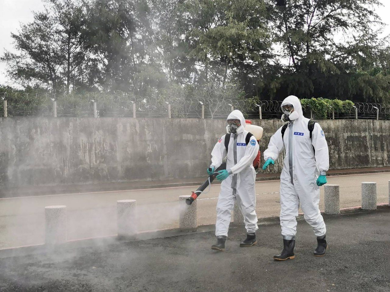 陸軍三三化學兵群上校指揮官龔龍峰受訪時表示,化學兵此次派遣32名兵力、12組裝備,9點至10點至感染個案的工作場域,即桃園機場第2航廈P3停車場進行消毒,其他範圍包含計程車駕駛休息室、廁所與電梯,而11點將針對第2航廈進行全面清消。