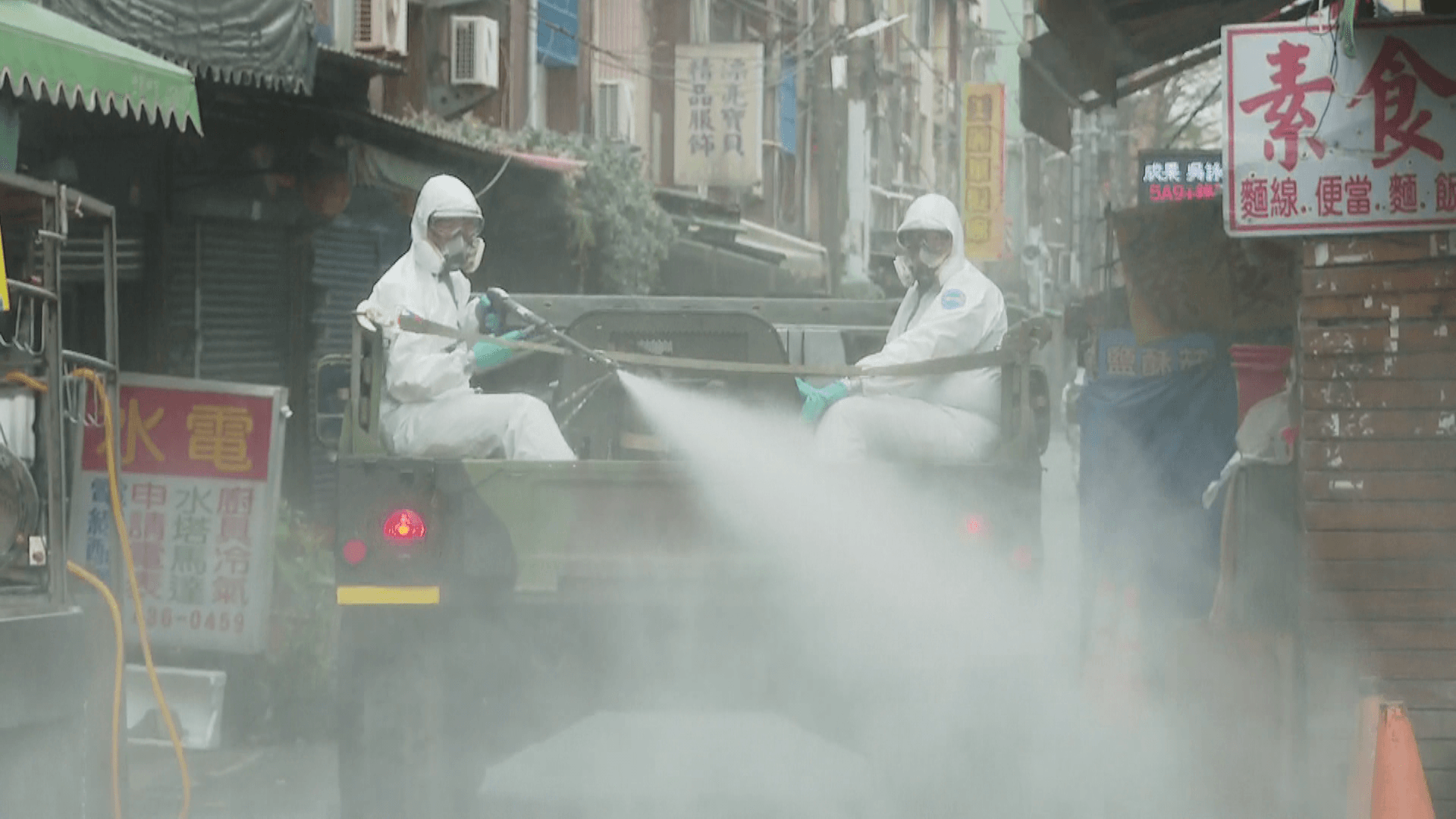 至於另一頭的忠貞市場,由於案17230曾經在去年12月30日、31日來擺攤,因此休市到6日。沒了買菜人潮,反倒滿滿都是全副武裝的化學兵,為了防堵漏洞,市場周圍23個里擴大消毒。