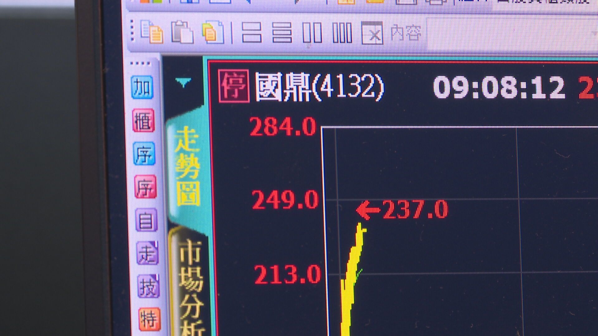 國鼎生技5日召開重訊記者會,宣布新冠肺炎口服新藥解盲成功,6日股價開盤往上攻,開盤8分鐘飆到237元,一度漲幅67%,由於成交均價已經跟前一天相差50%以上,觸及熔斷機制,櫃買中心緊急公告6日暫停交易。國鼎生技董事長劉勝勇:「新藥開發這個行業在台灣是稀少性。」