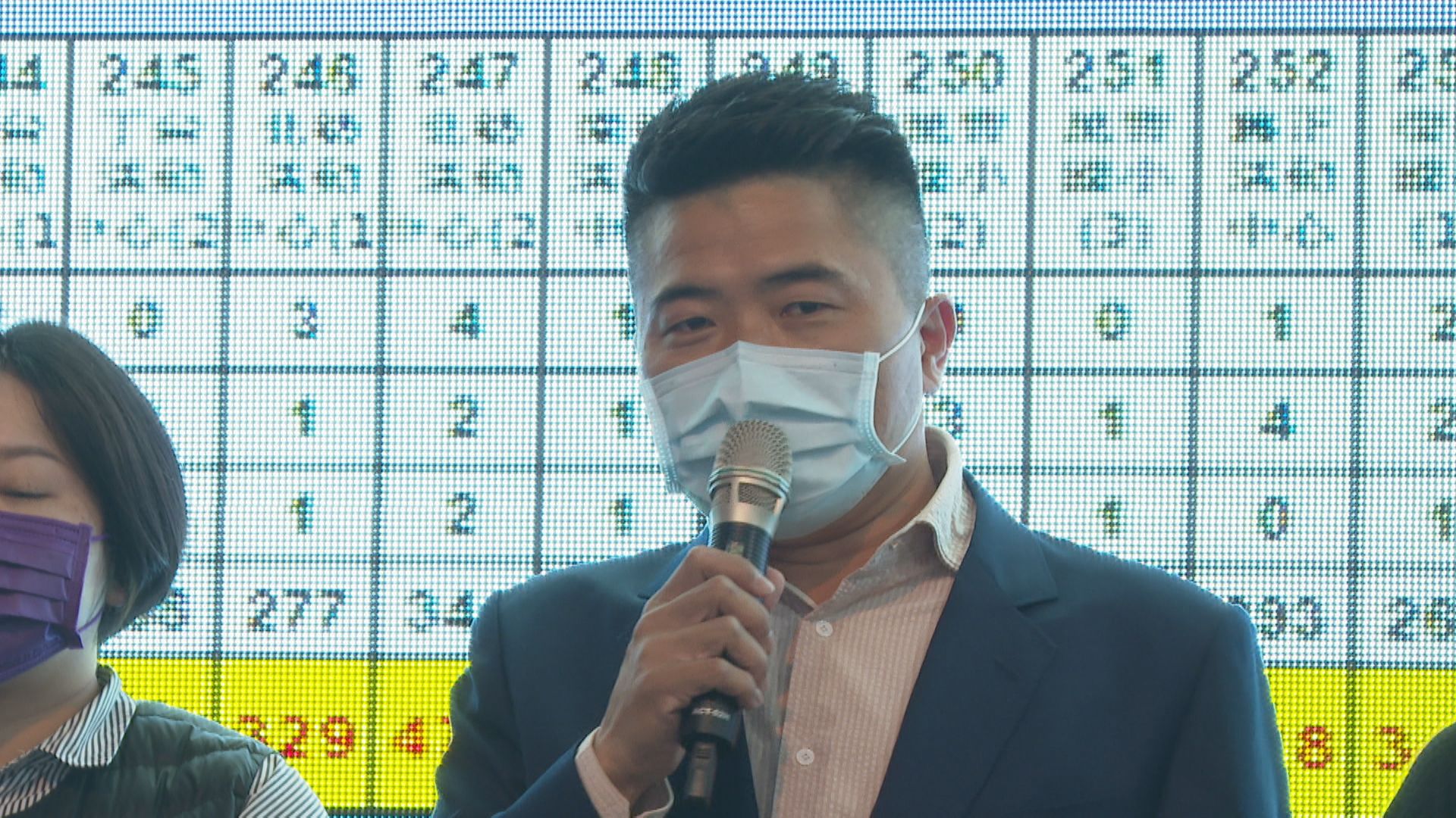 一邊擠,一邊被逼著訪問講話,國民黨中二選區立委補選候選人顏寬恒,票還沒開完,下午五點半左右,神情低落,現身總部門口,提前接受敗選結果,感謝選民,深深一鞠躬。