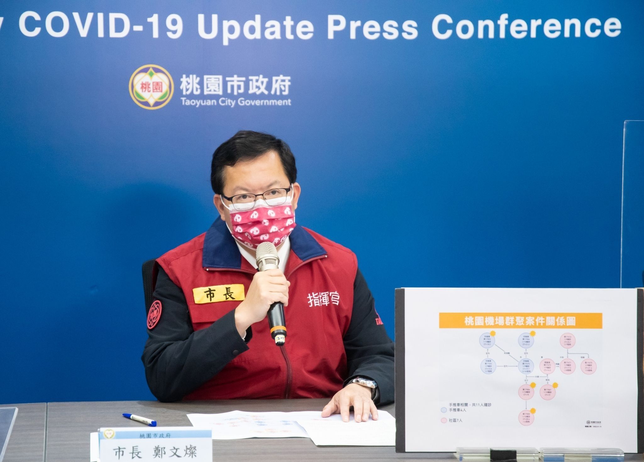 桃機群聚案持續出現新確診案例,桃園市長鄭文燦11日上午召開防疫會議,宣布12日起至16日止,全市37個社區接種站不需預約、登記,可隨到隨打疫苗,或是至指定217間醫療院所接種,盼衝高第3劑覆蓋率。