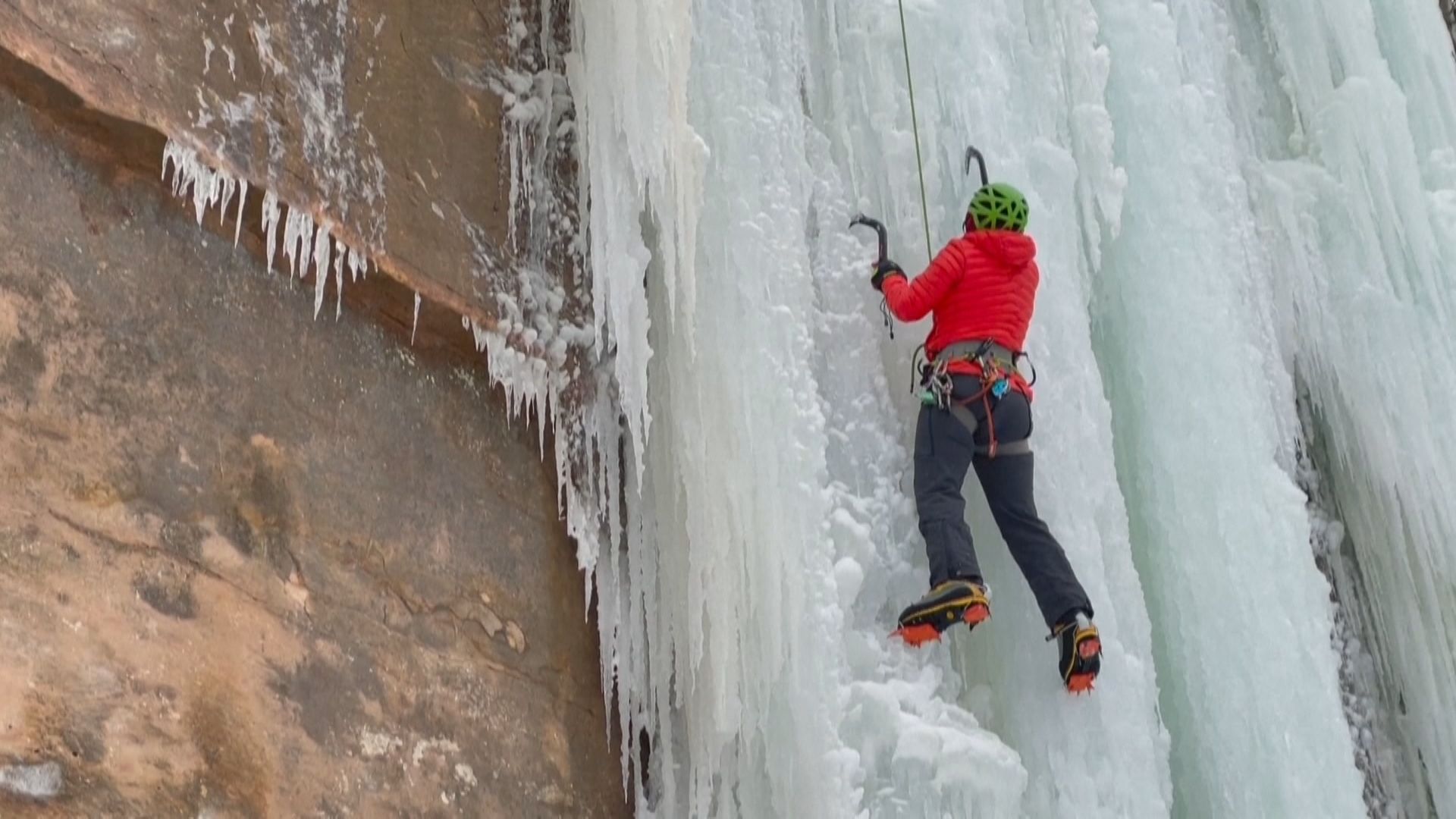 冰上攀岩人士希爾表示:「我的老天,真的超冷,我想大概溫度大概是(華氏)零度或是兩度而已吧?」手都快凍僵了,趕快生火取暖,把手放火堆上烤一烤,在攝氏零下16、17度的冰面上攀爬,手幾乎要失去知覺。