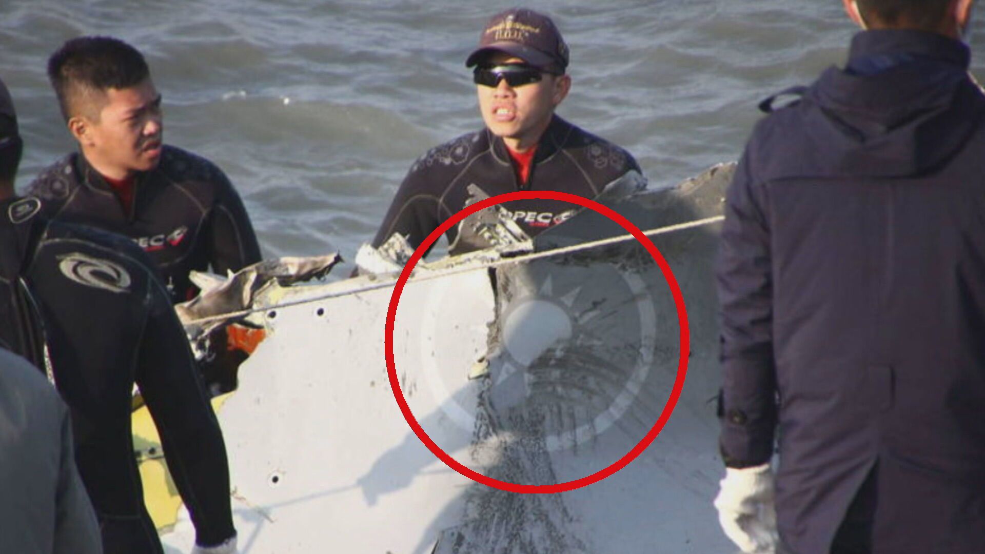 F-16V戰機的機身殘骸,重量連吊掛鋼索都難以承受,應聲斷裂。10幾名潛水員來回打撈一整天,載回來兩大船殘骸,包括兩大塊機身、機翼跟油桶,數量驚人,其中大多破碎變形,可見墜機時的衝撞力道有多大。其中這一片殘骸上頭清楚看得到國徽塗裝。