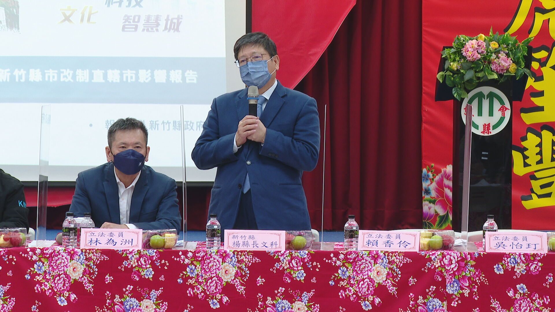 新竹縣長楊文科:「經過我們縣議會整個了解支持,我們才會來去推合併升格的事情。」