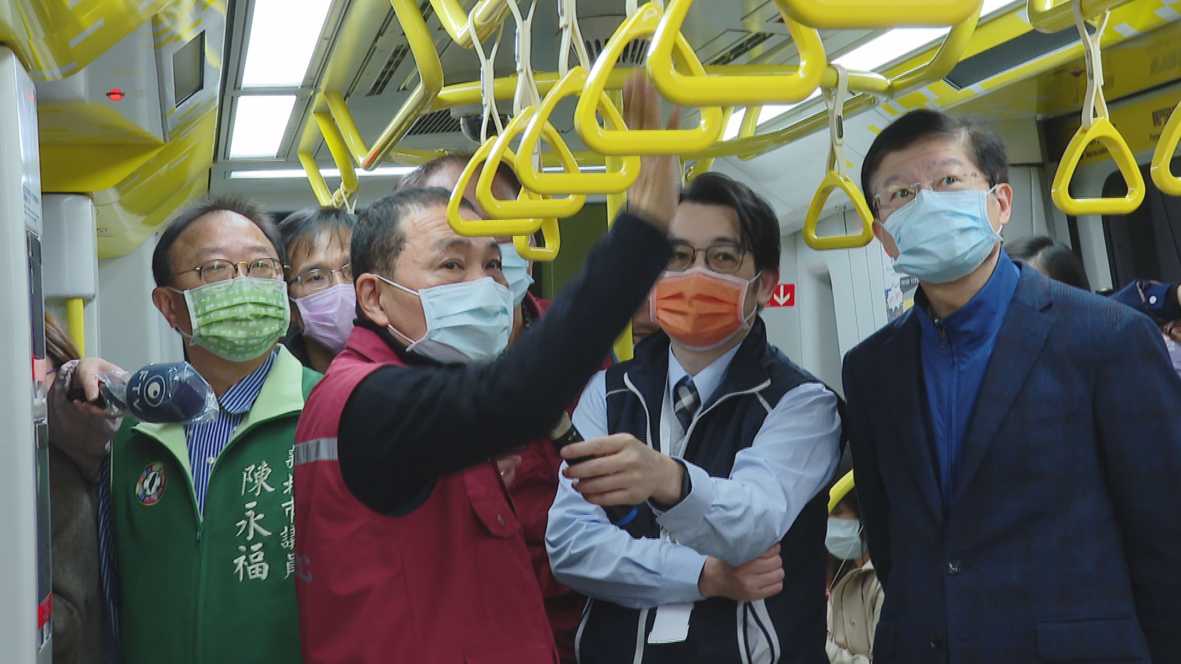 侯友宜14日前往捷運大坪林站視察新北環狀線的防疫工作,要求捷運公司在疫情升溫之際,務必落實防疫作業,並說明了新北環狀線列車的消毒工作,包含每天出車前及每4小時於端點站停留期間,完成拉環、扶手、座位處等設備的消毒;捷運旅客常接觸的設備,如自動售票機、加值機、ATM螢幕與按鈕、廁所馬桶座墊及門把、詢問處窗口桌面、電扶梯扶手帶及電梯按鈕等處,將每2小時消毒1次。