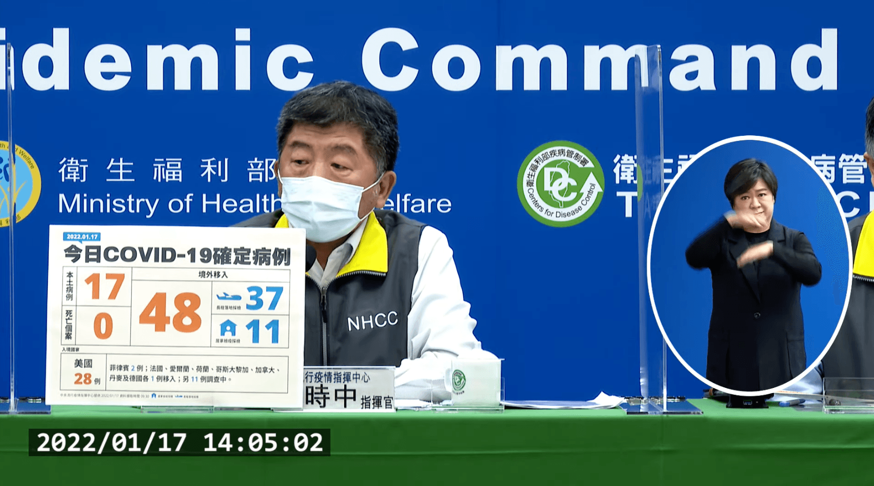 指揮中心說明,新增境外移入個案為28例男性、20例女性,年齡介於未滿10歲至50多歲,分別自美國(28例)、菲律賓(2例)、法國、愛爾蘭、荷蘭、哥斯大黎加、加拿大、丹麥及德國(各1例)移入;另11例調查中。入境日介於2022年1月2日至1月16日。