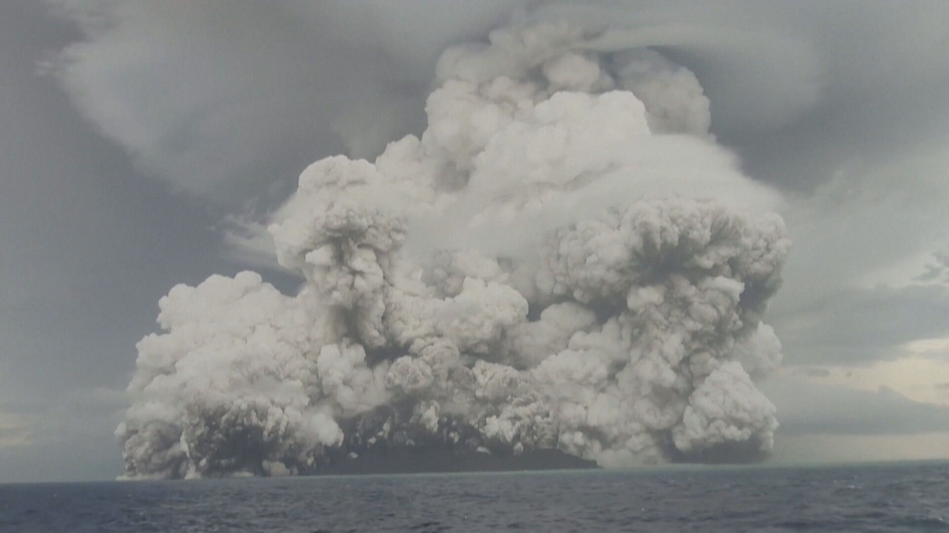 東加王國附近海底火山連續兩天爆發,最新近況釋出,整座島嶼被火山灰覆蓋,當時引發的強震和海嘯,造成一名英國女子不幸離難。