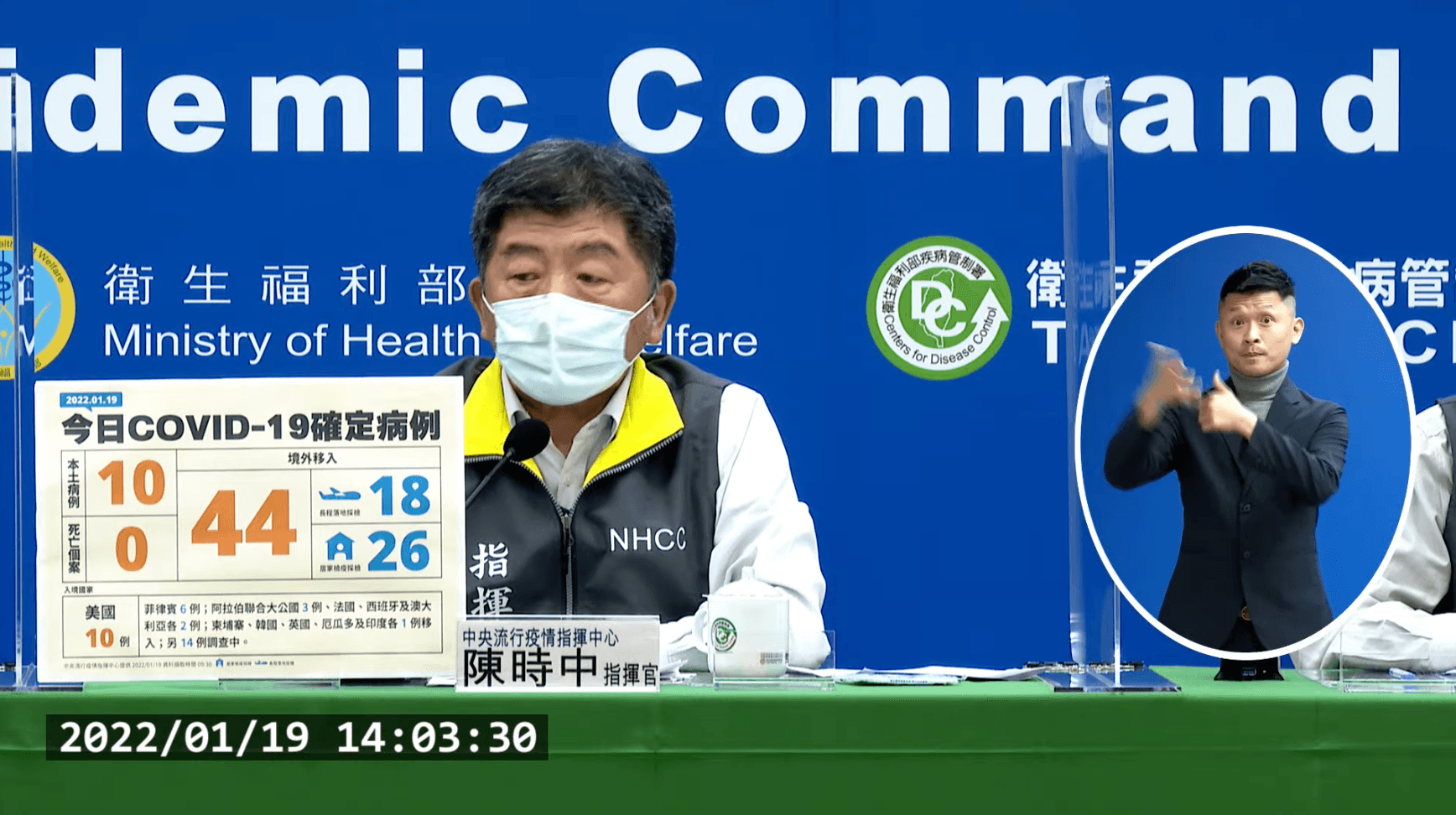 指揮中心表示,新增本土個案為5例男性,5例女性,年齡介於未滿10歲至60多歲;新增境外移入個案為16例男性、24例女性、4例調查中,年齡介於未滿5歲至70多歲,分別自美國(10例)、菲律賓(6例)、阿拉伯聯合大公國(3例)、法國、西班牙及澳大利亞(各2例)、柬埔寨、韓國、英國、厄瓜多及印度(各1例)移入;另14例調查中。入境日介於2021年12月29日至2022年1月18日。
