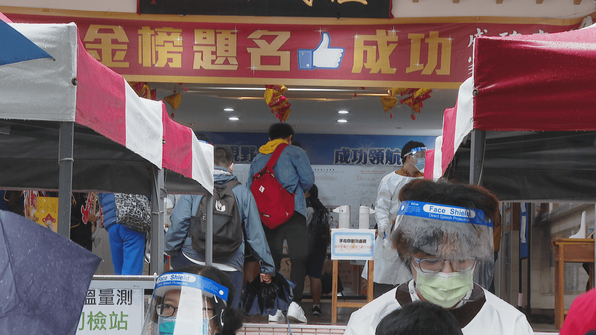 驗證件、量體溫進場,大學學測第一天,考場高規格防疫,單一出入口管制人流、全程戴口罩、不開放家長陪考。