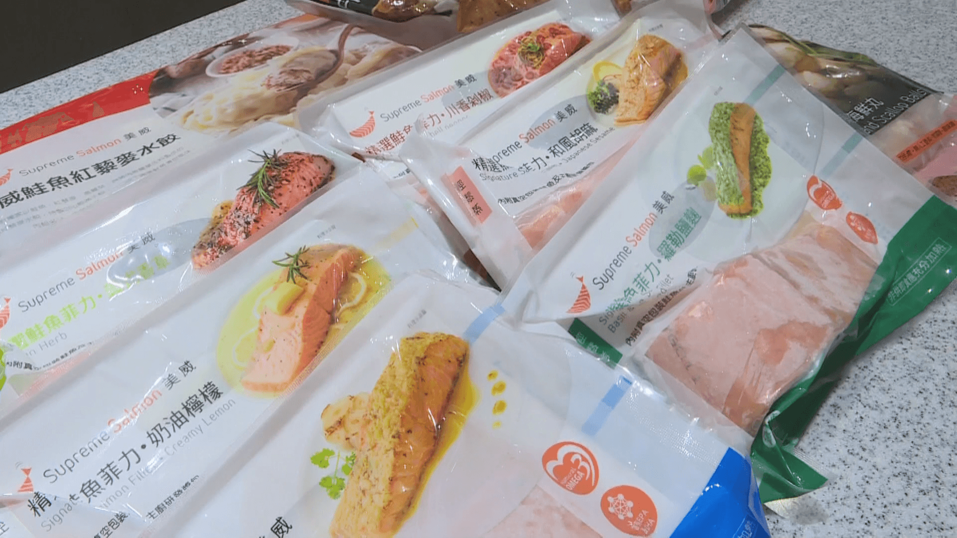 農曆年前不少民眾趕辦年貨,讓各大魚貨業者訂單量大增,有超商在年前開了首間超市,各種魚貨海鮮都賣,還能24小時外送。還有專賣鮭魚的水產公司推出一系列的料理包,加熱就能直接上桌,預估過年檔期可以賣超過15萬包。