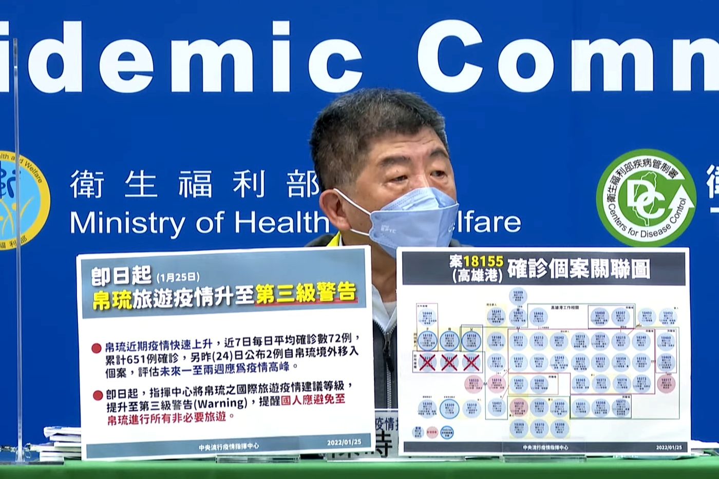 另一方面,指揮中心也宣布,25日起帛琉旅遊疫情升至「第三級警告」,與全球同步,並採用與其他地區一樣的入境方式,建議國人不要去帛琉進行非必要旅遊。