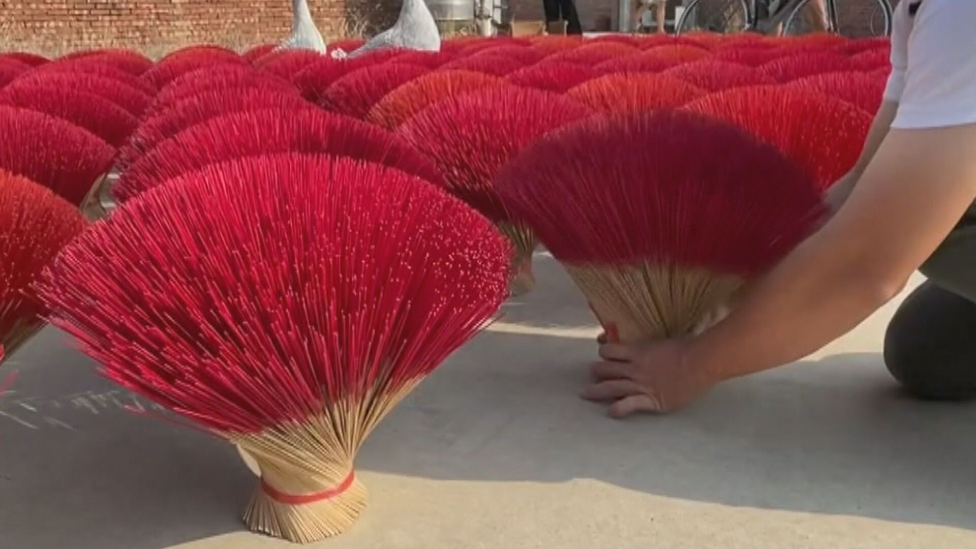 小女生輪流拍照,沉浸粉紅花海裡,但這些不是花,而是「香」,嘉義這處製香廠,香腳擺起來就像國外的粉紅波波草,因此爆紅成為打卡景點,擔心民眾脫口罩拍照,會成為防疫破口,現在店主把香都收了,叫大家別來了。