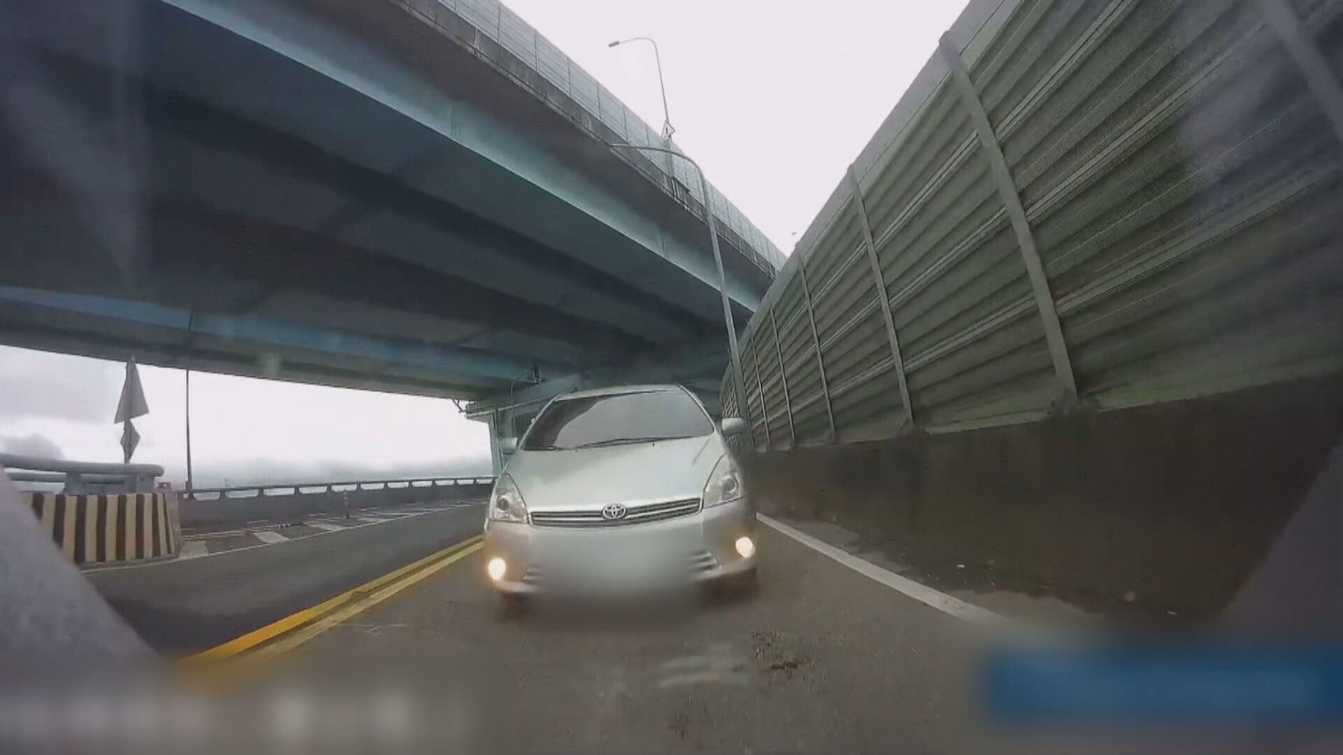 重機騎士剛上匝道準備過彎,萬萬沒想到眼前冒出一輛銀色休旅車,迎面撞了上來。遭撞騎士表示:「看到車子到撞上,基本上沒有超過1秒鐘的時間,那這個已經超越人類反應的速度了,這個地方因為是盲彎的關係,基本上要躲我想很難。」