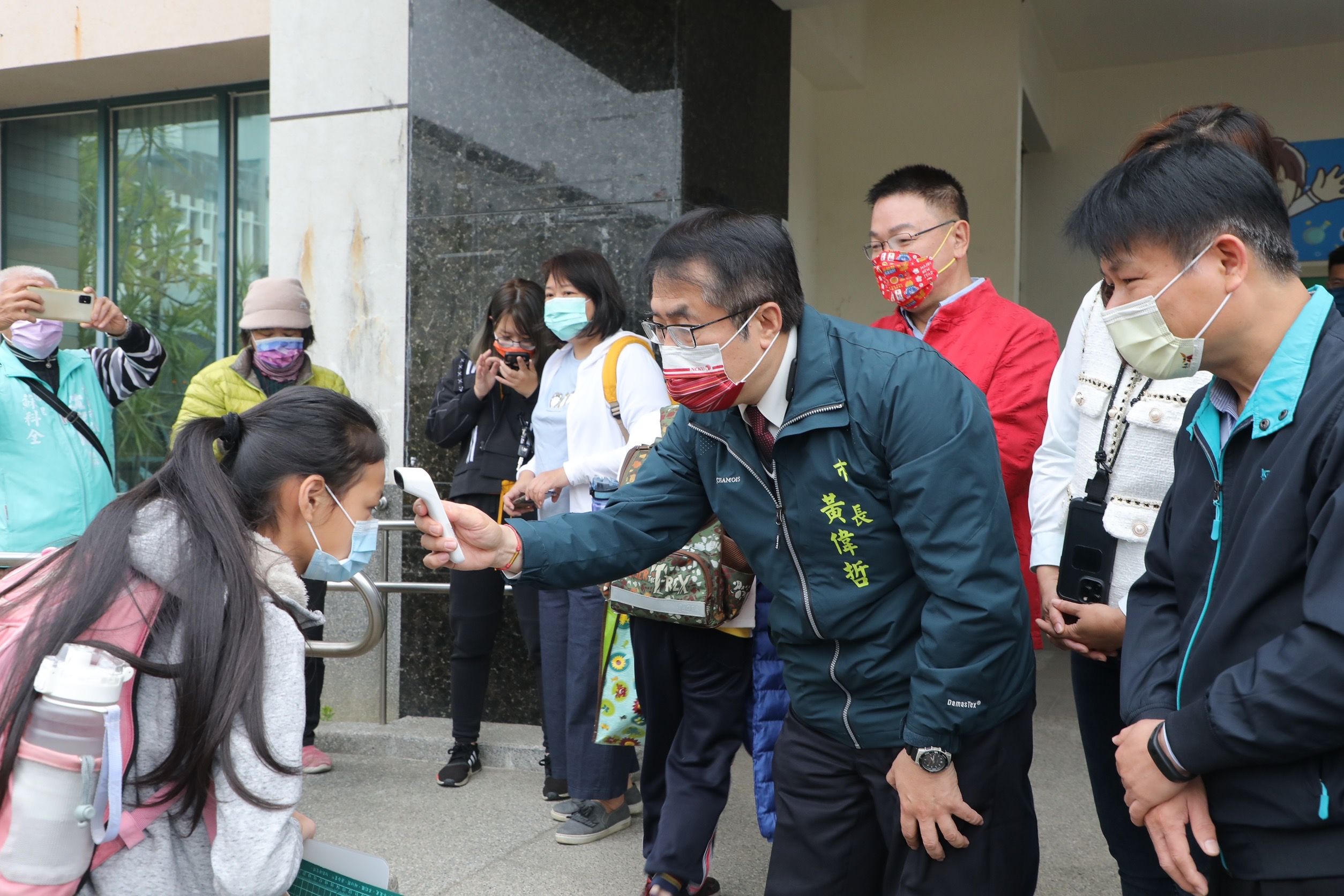 黃偉哲在出席午記者會前,至新營區新營國小視察校園防疫,受訪時證實有確診者足跡,正積極處理,希望各校能嚴守防疫措施,讓孩子安心上學、一切平安。台南市府強調,該名確診女學生是在高雄染疫並確診,並非在台南市,疫調上來說也僅為在台南市有足跡、並非台南確診者,兩者說法意義大不同。