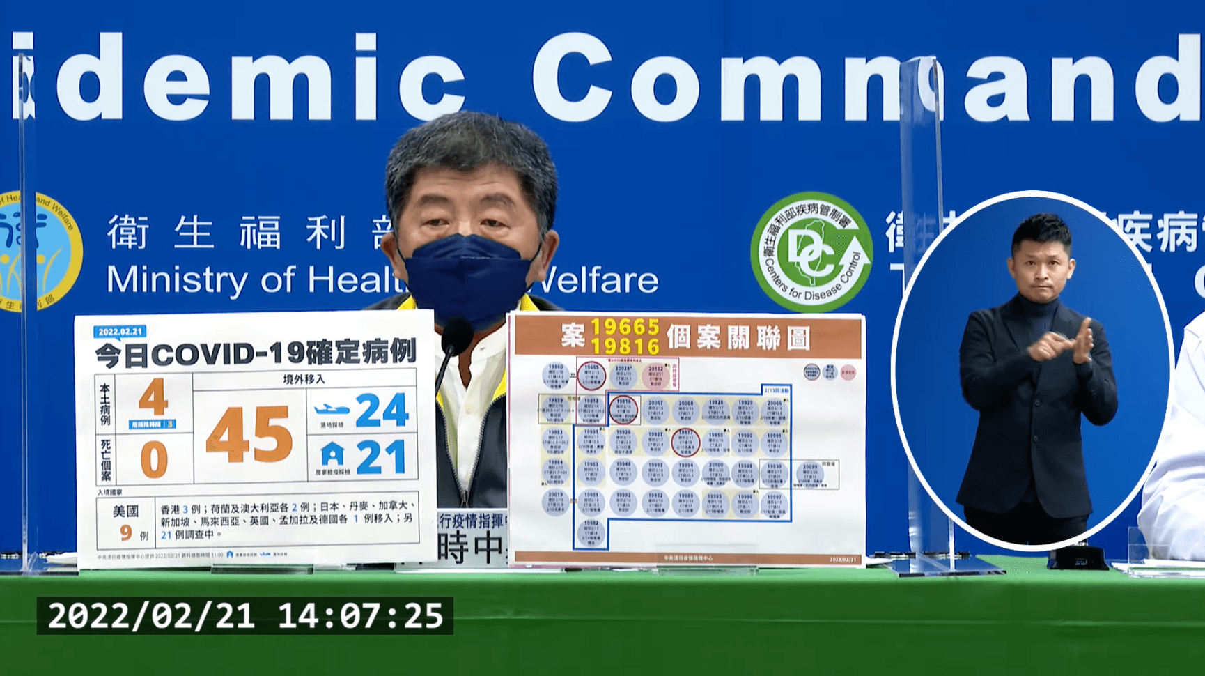 指揮中心說明,新增境外移入個案為25例男性、20例女性,年齡介於20多歲至80多歲,分別自美國(9例)、香港(3例)、荷蘭及澳大利亞(各2例)、日本、丹麥、加拿大、新加坡、馬來西亞、英國、孟加拉及德國(各1例)移入;另21例調查中。入境日介於今2022年1月15日至2月20日。