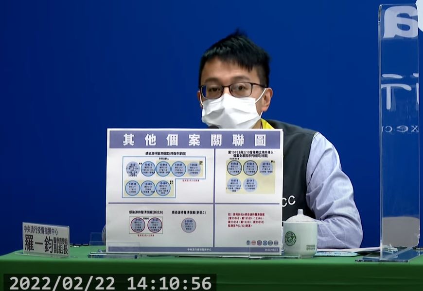 這名護理師(案20020)感染源不明,主要負責接待落地採檢陽性的旅客入住,2月11日採檢陰性,18日採檢陽性。指揮中心醫療應變組副組長羅一鈞在22日疫情記者會上表示,最新的病毒基因定序結果,該護理師病毒序列為Omicron的BA.1病毒株,是原本的Omicron病毒株。