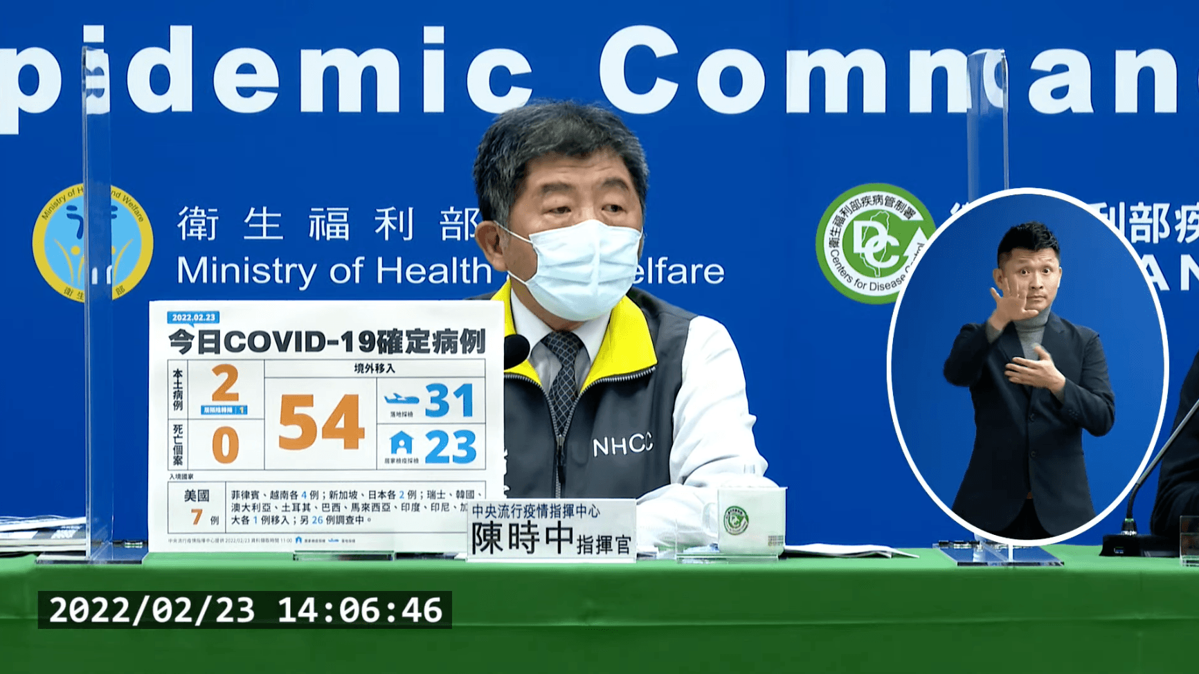 指揮中心說明,新增境外移入個案為32例男性、22例女性,年齡介於未滿5歲至80多歲,分別自美國(7例)、菲律賓及越南(各4例)、新加坡及日本(各2例)、瑞士、韓國、澳大利亞、土耳其、巴西、馬來西亞、印度、印尼及加拿大(各1例)移入;另26例調查中。入境日介於2021年12月23日至2022年2月22日。