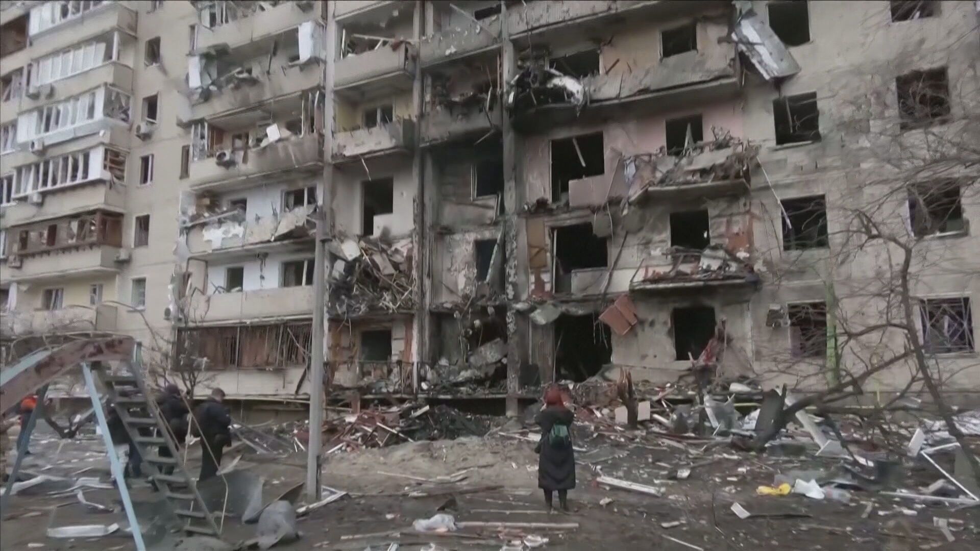 一連串爆炸響徹天際,目擊民眾拍下震撼一幕,烏克蘭第二大城哈爾科夫又一次傳來空襲,而來到首都基輔狀況同樣慘烈,社區公寓燃起熊熊烈火,整棟大樓被炸成斷垣殘壁,烏克蘭25日凌晨成功擊落了一架俄羅斯敵機,沒想到卻意外波及附近居民。