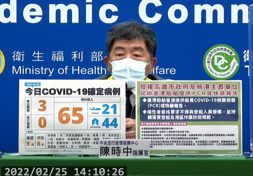 指揮中心表示,25日新增1例死亡個案(案18815),為60多歲本國籍男性,具慢性病史,為1月30日公布之菲律賓境外移入個案,1月28日入境時因身體不適直接送醫,個案具呼吸困難、咳嗽、全身倦怠等症狀,診斷為肺炎,同日採檢確診並安排住院隔離治療,未解除隔離,於2月23日死亡。