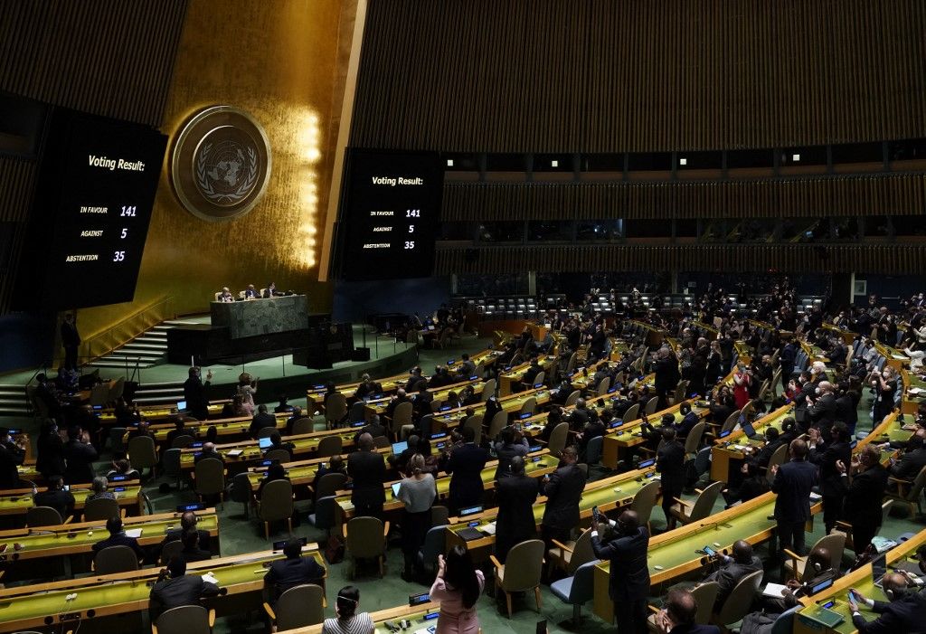 反對的國家有加入俄軍行列的白俄羅斯、位在非洲的厄利垂亞、北韓、敘利亞等國;包含中國在內的35個會員國選擇棄權。