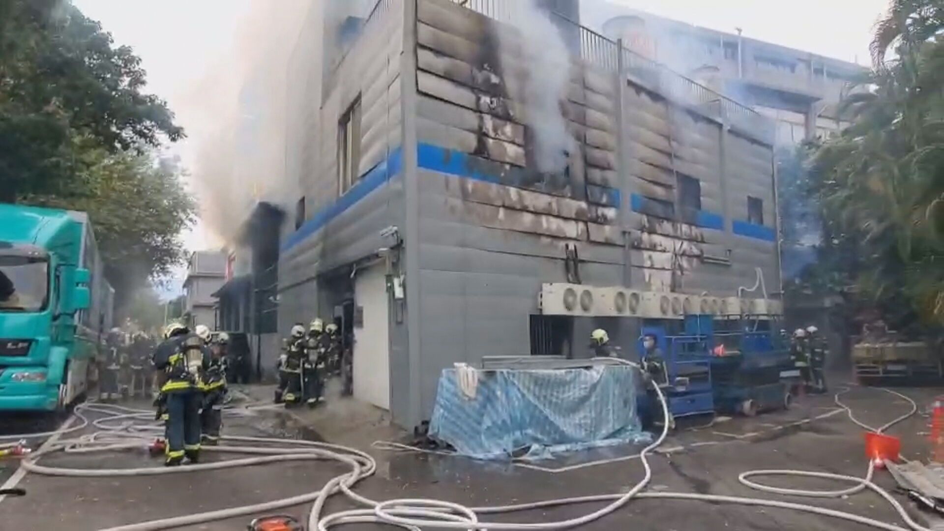 北市消防局指出,14日下午3點6分,大同大學綜合2層樓高的建築物,1樓冒出火舌,消防局派出至少消防車輛19輛、救護車輛2輛、人員58名趕赴馳援,布設水線搶救火勢,第一時間疏散建築物內學生,截至下午3點30分,無人員受困,消防人員持續救援全力滅火中。