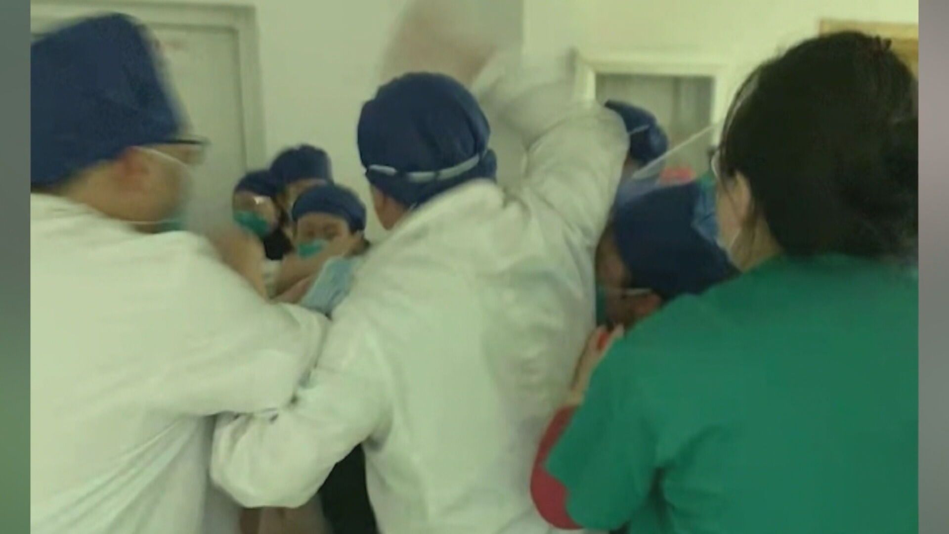 醫院內一陣騷動,醫護人員相互咆哮,甚至爆發肢體衝突,只見一名男醫生揮舞著拳頭,旁邊醫護人員急忙將他拉住,整起事件發生在上海市第六人民醫院,當地爆發院內感染,護士不願在防護裝備不足的狀況下去照顧確診病患,但醫生卻動手毆打護士,強逼護士上陣。