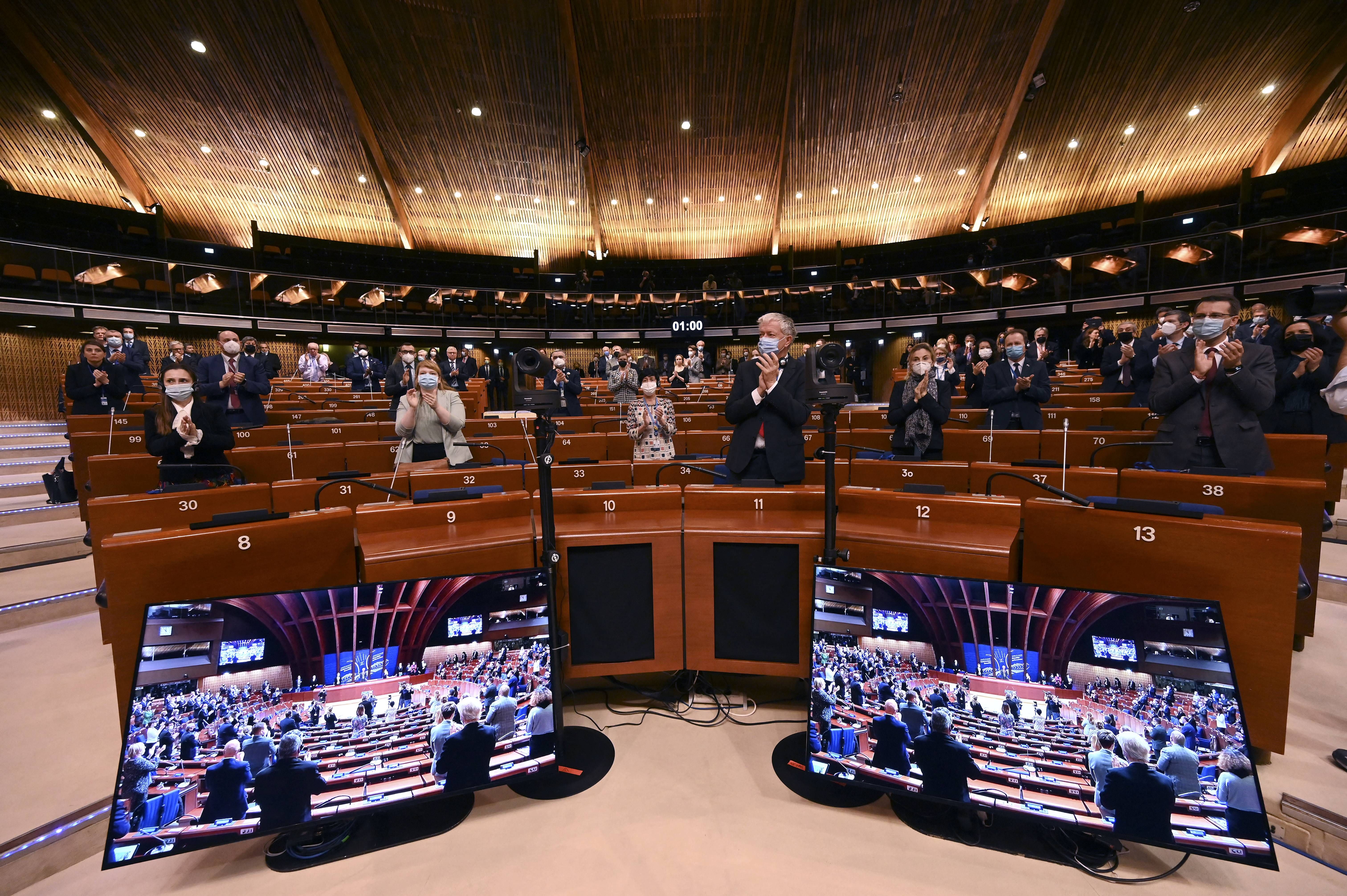 歐洲理事會(Council of Europe)3月14、15日在法國史特拉斯堡召開國會議員大會(PACE),會議中針對俄羅斯對烏克蘭發動軍事攻擊,嚴重違反人權展開討論,並投票決定是否開除俄羅斯會籍。