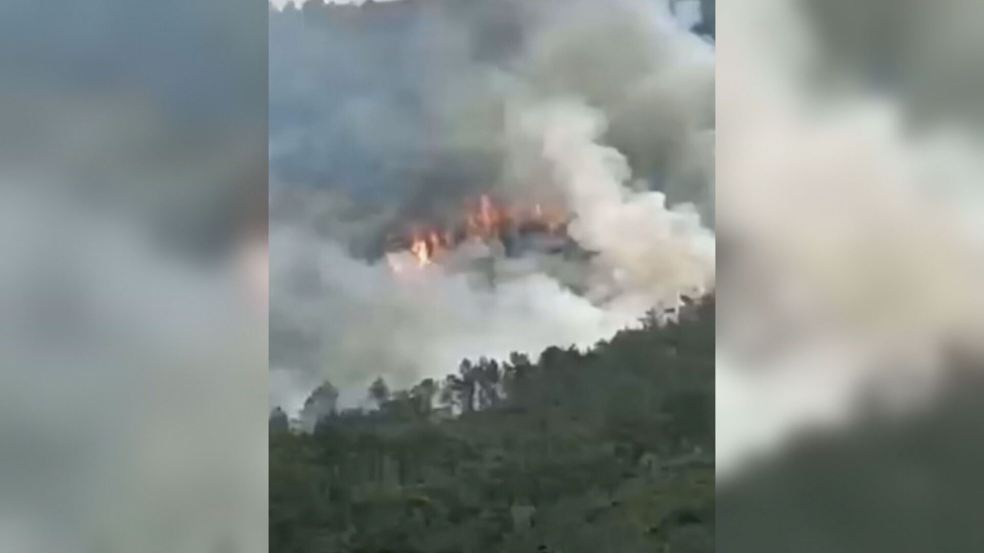 遠處的山頭飄散大量白煙,直衝天際,大火熊熊燃燒,地面可見疑似飛機殘骸,畫面怵目驚心。中國《央視》主播:「波音737客機在廣西梧州滕縣發生事故,並引發山火。」