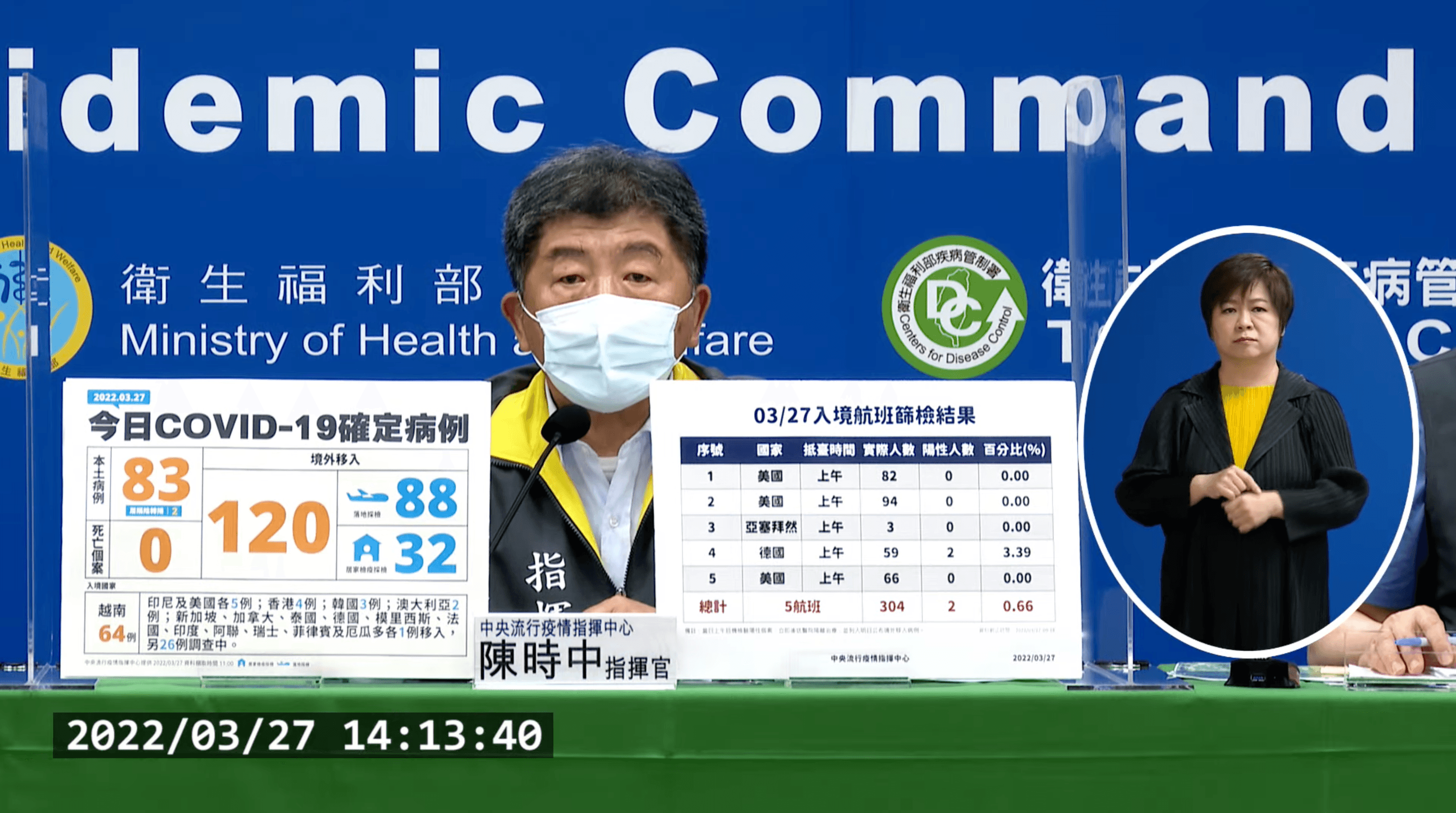 指揮中心說明,今日新增境外移入個案為61例男性、59例女性,年齡介於未滿5歲至70多歲,分別自越南(64例)、印尼及美國(各5例)、香港(4例)、韓國(3例)、澳大利亞(2例)、新加坡、加拿大、泰國、德國、模里西斯、法國、印度、阿拉伯聯合大公國、瑞士、菲律賓及厄瓜多(各1例)移入,另26例調查中。入境日介於今(2022)年3月7日至3月26日。