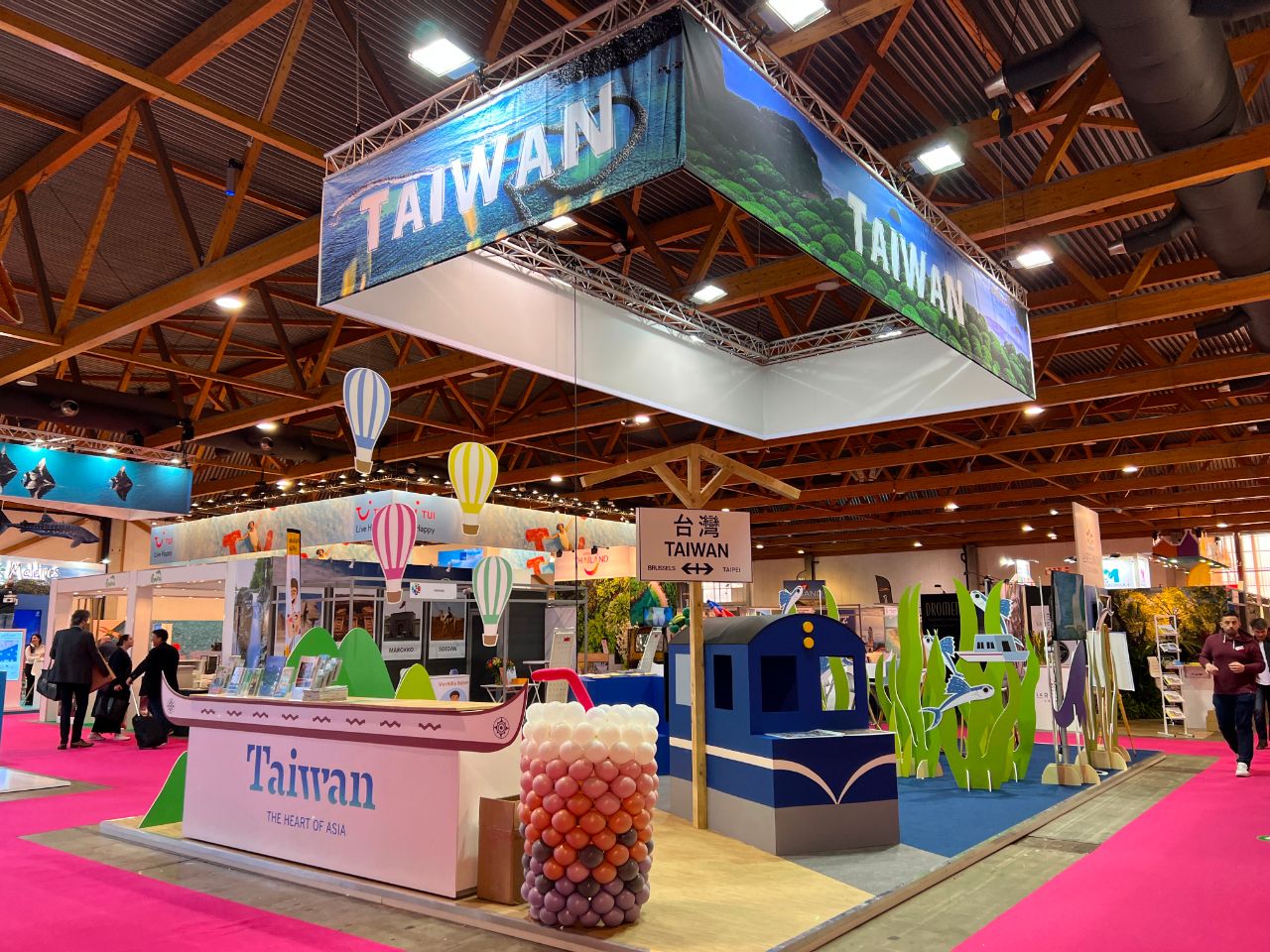 布魯塞爾國際觀光旅展順利落幕,駐歐盟兼比利時代表處表示,台灣展場特別搭建火車車廂、海草、飛魚、鯨豚、熱氣球及山脈等造景,營造出車站依山傍水的情境,讓比利時觀展民眾一目瞭然在台灣可從事的活動,接待櫃台也特別裝飾有蘭嶼拼板舟模型,宣揚達悟族的傳統文化。