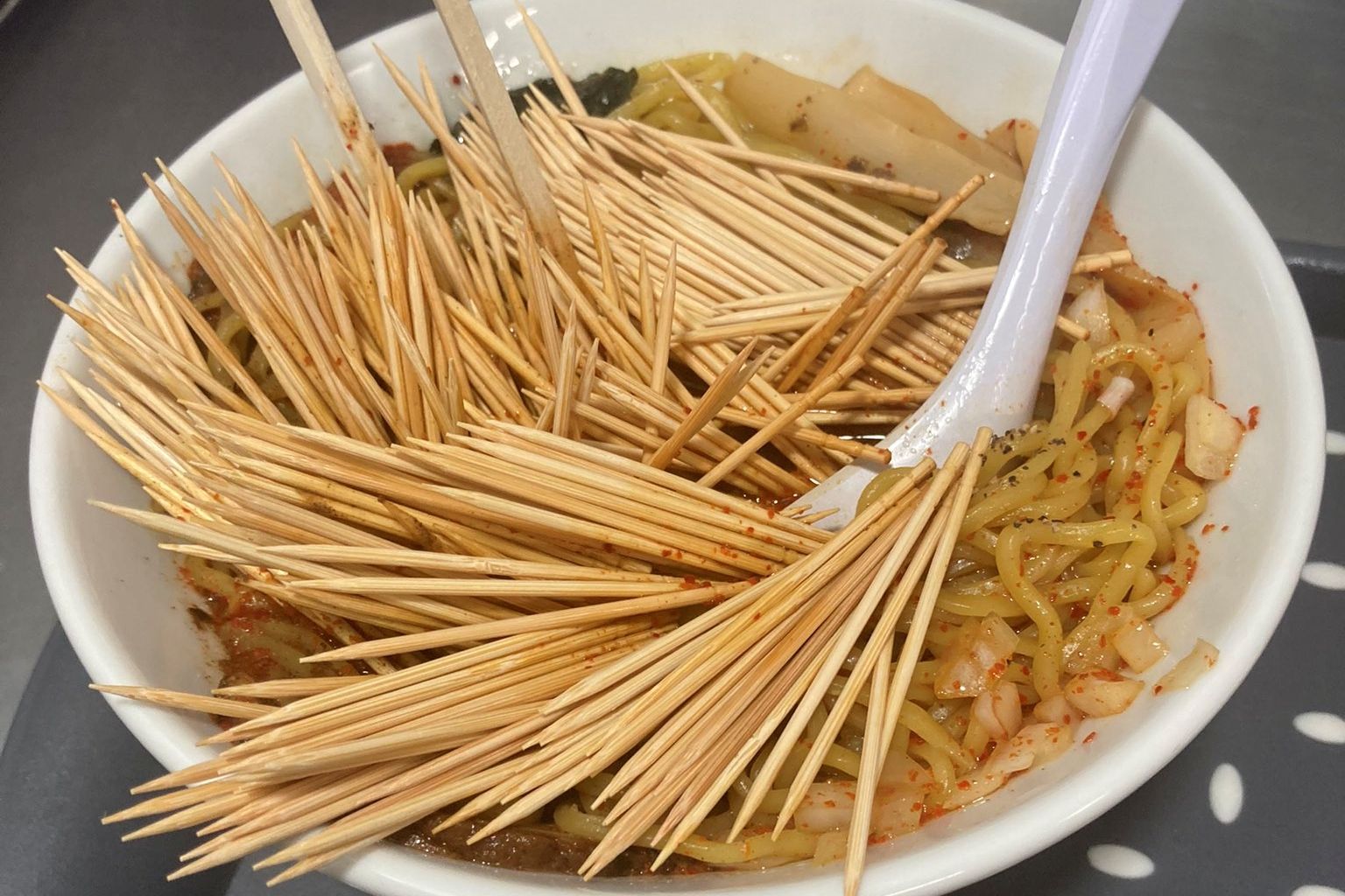 店家當天將整碗牙籤的拉麵照片放上官方推特,並說明在點餐時,已經跟客人確認是否需要追加配料,而這位客人每次來訪時,都會每隔2分鐘就點一份50日圓(約新台幣12元)的配料,為了避免造成店外等候客人的困擾,才設立此規矩。店家也說客人的這種行為,只會讓自己能去的店家越來越少而已。