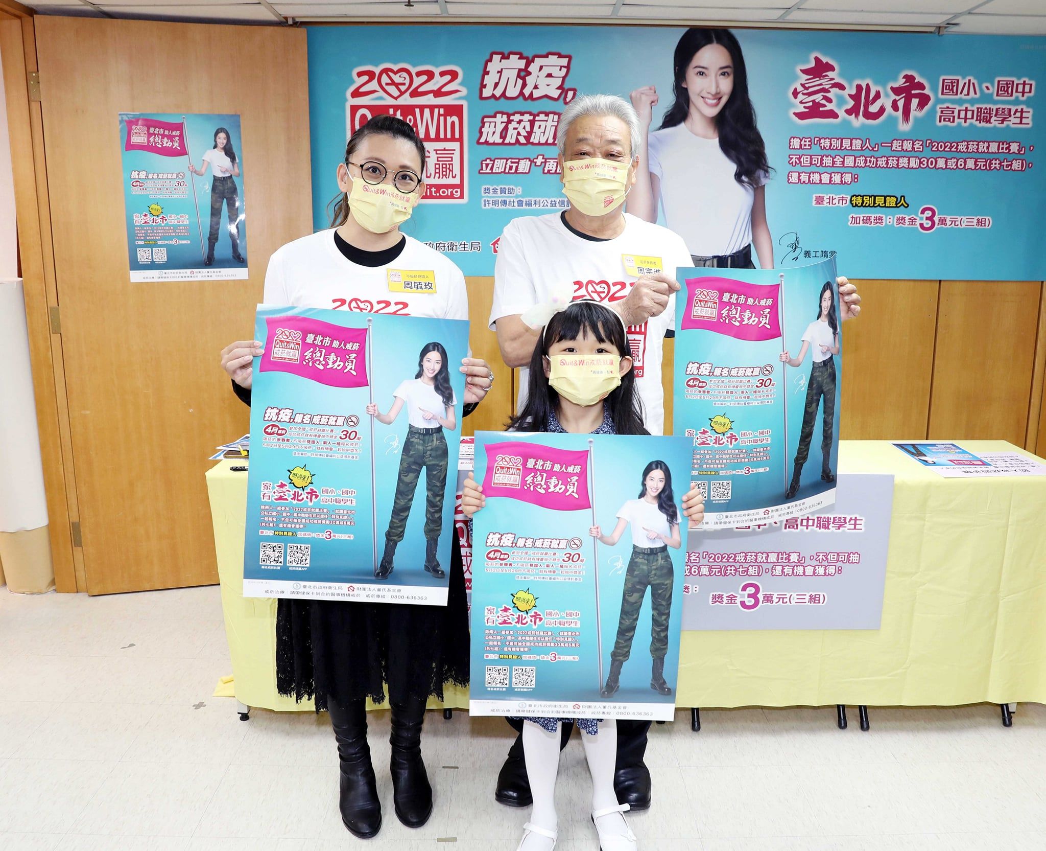 台北市衛生局為響應「2022戒菸就贏比賽」,與活動主辦方財團法人董氏基金會聯手推出「特別見證人」加碼活動,新增3組3萬元獎金,就是要鼓勵台北市國小至高中職學生當吸菸家人的特別見證人,希望能促成吸菸者進一步報名參加活動,雙園國小一年級的陳同學,率先幫52年菸齡的阿公周宗進報名,陳同學自己擔任「特別見證人」,媽媽則擔任不吸菸「見證人」,周宗進13歲就開始抽菸、現在一天抽一包菸,但是為了孫女,決心要戒菸。