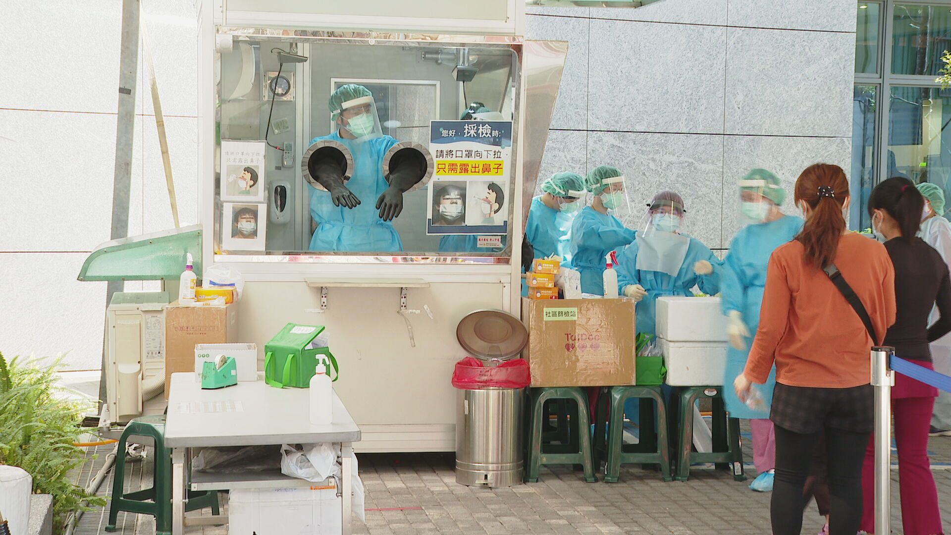 採檢民眾透露:「介壽國小的(確診)小朋友(接觸),因為是同一個園區所以被通知要來檢查。」另一名民眾表示:「確診者有到我們早餐店,所以就是來採檢一下。(小朋友)也是特別帶過來(採檢)。」