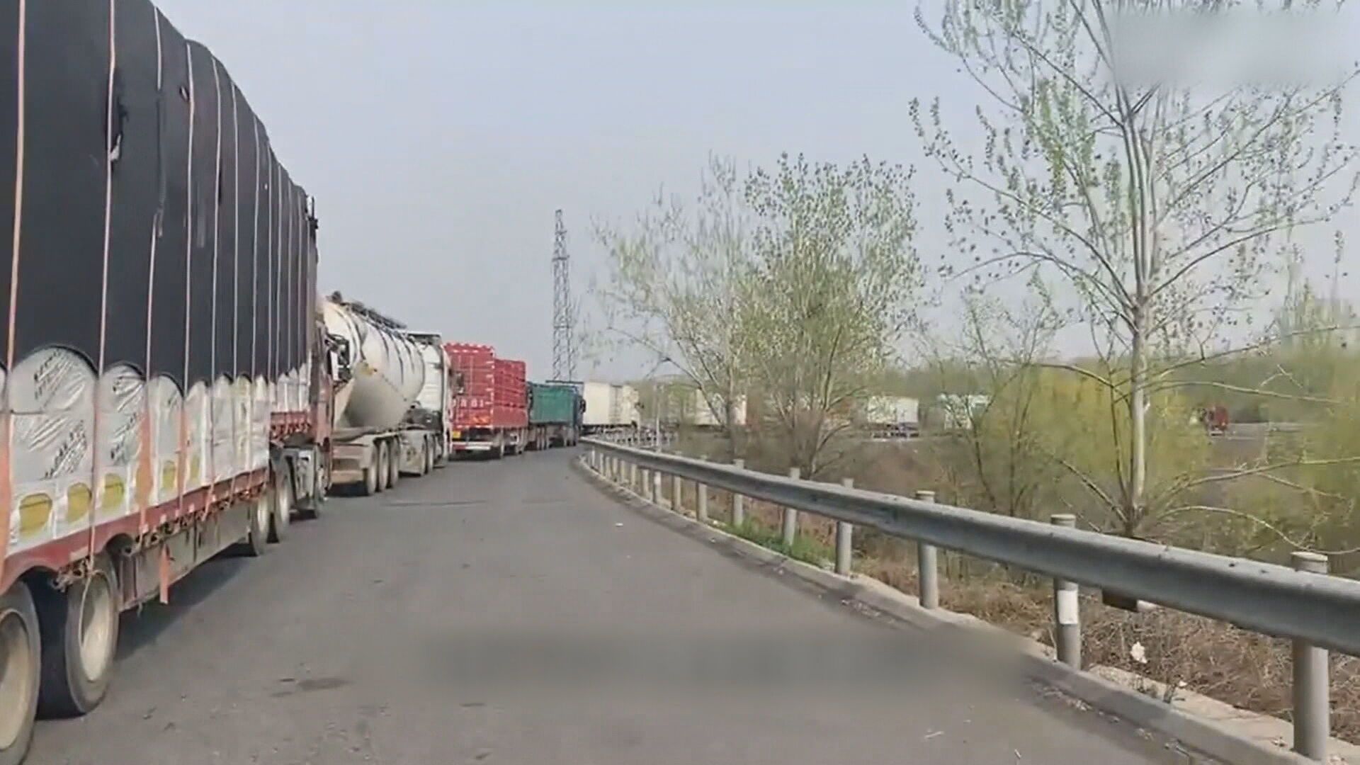 中國這名卡車司機才剛抵達高速公路路口,就已經看見長長車龍。卡車司機:「就是每一輛車都得檢查,做核酸(檢測)。」
