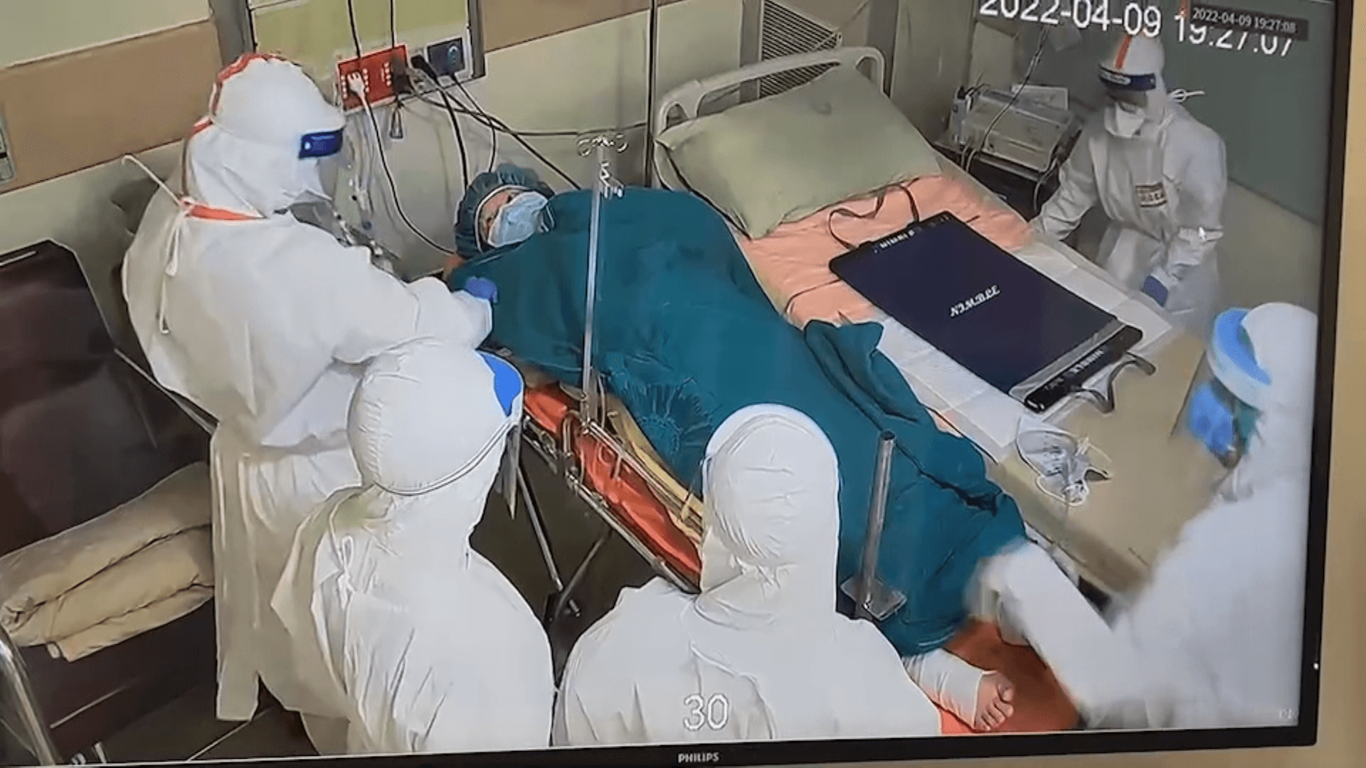 醫護:「加油、加油、加油!」最後產婦也成功生下男嬰,讓在場人員相當感動。產婦從負壓隔離病房送往隔離手術室開刀,現場包含婦產科在內,總共4科8名醫護全副武裝。