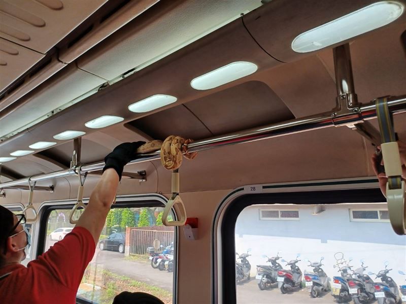 台鐵18日上午自苗栗出發的272車次自強號,到瑞芳站有乘客通報車廂內有蛇,列車停在宜蘭站疏散乘客,消防人員上車順利抓到近1公尺蟒蛇,初步研判是寵物蛇,台鐵表示,找到飼主將開罰。