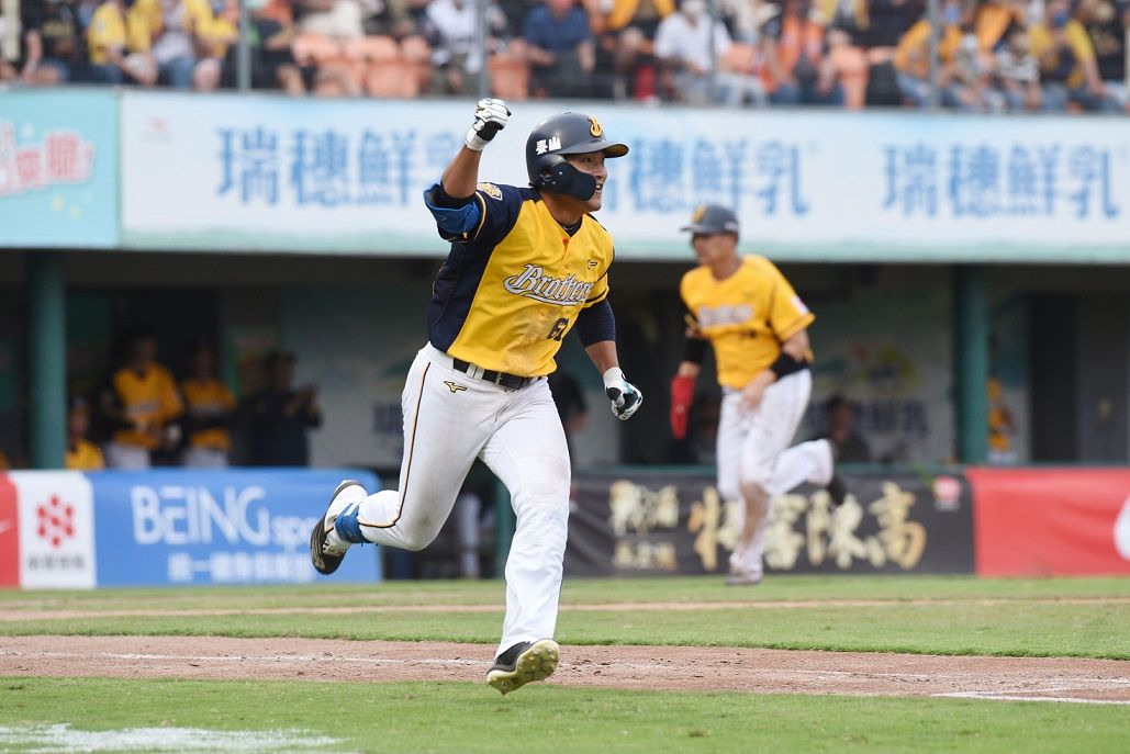 賽事主播:「回傳結果來得及嗎?這一次安全、安全、安全,主審說安全回壘,比賽結束了。」統一獅隊球員們超級嗨,全體衝進場內,慶祝這支再見高飛犧牲打,不過中信兄弟,隨即提出挑戰。
