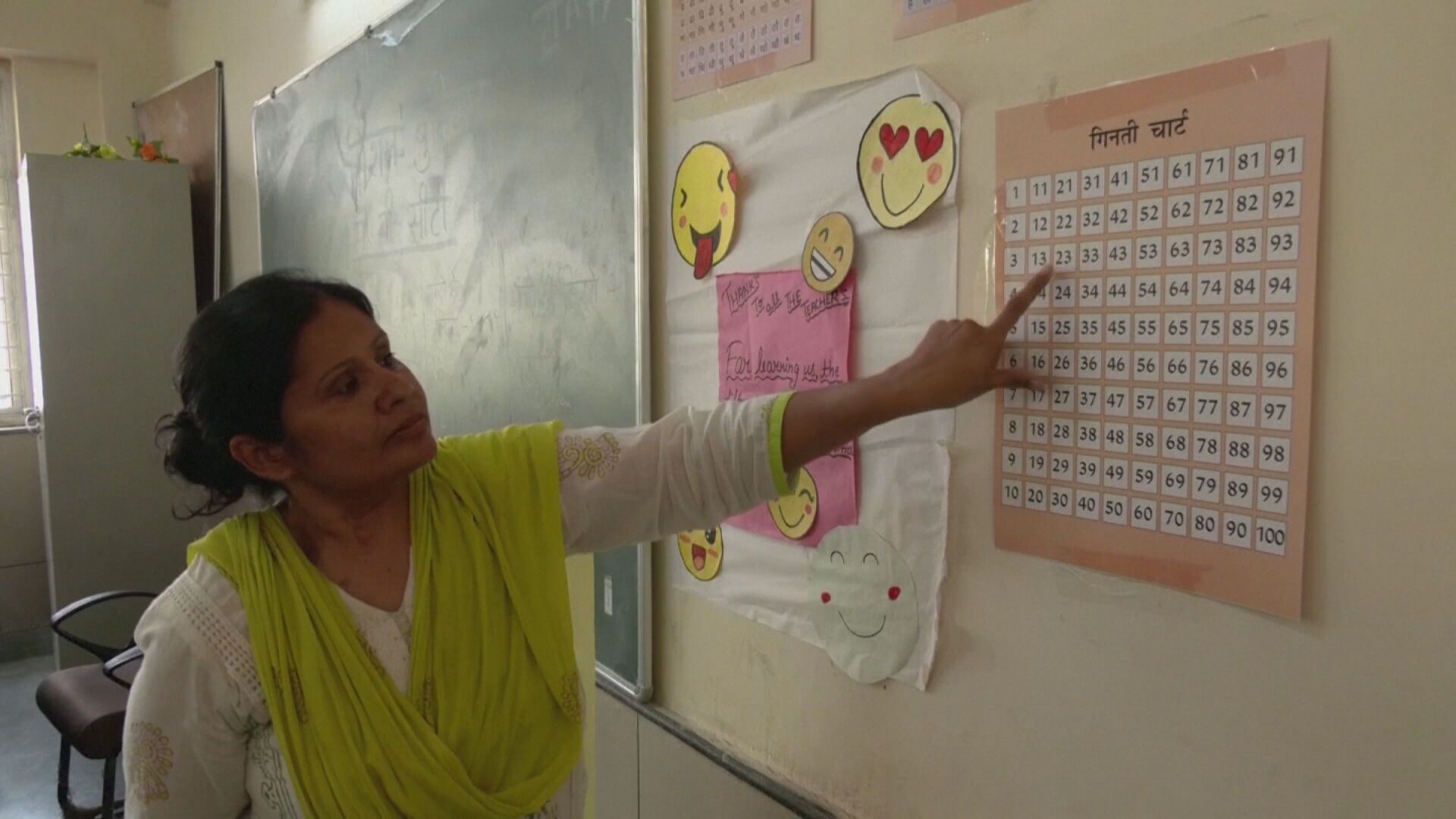 老師手指數字表,學生跟著朗誦,印度私立學校全英語授課,家長為了孩子教育趨之若鶩,然而現在學費高漲,學生面臨被迫轉學的命運,學生家長瓦卡爾汗表示:「當我們有1、2個月付不出學費時,學校甚至不准我的兒子參加2次考試。」