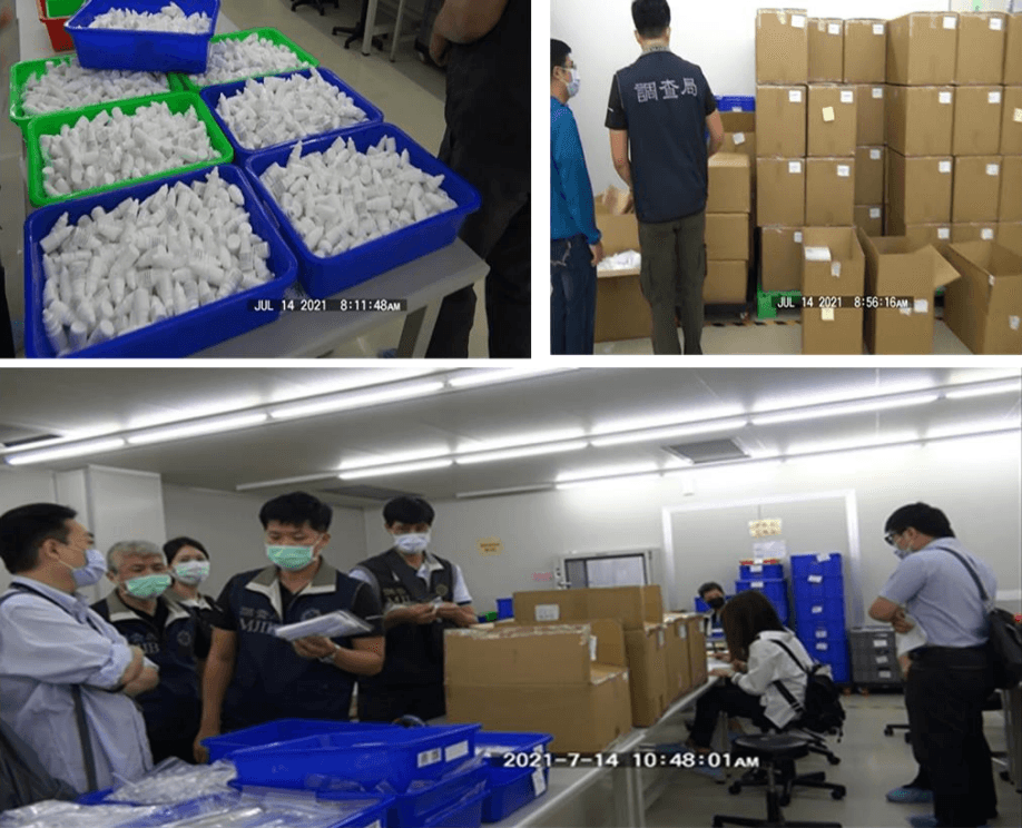 檢方接獲三鈺科技檢舉展開調查,派專案小組人員持搜索票到鼎群科技工廠,查獲配件包成品137包(每包內有2瓶裂解液)、快篩試劑8萬多劑,清查發現不法獲利257萬元。