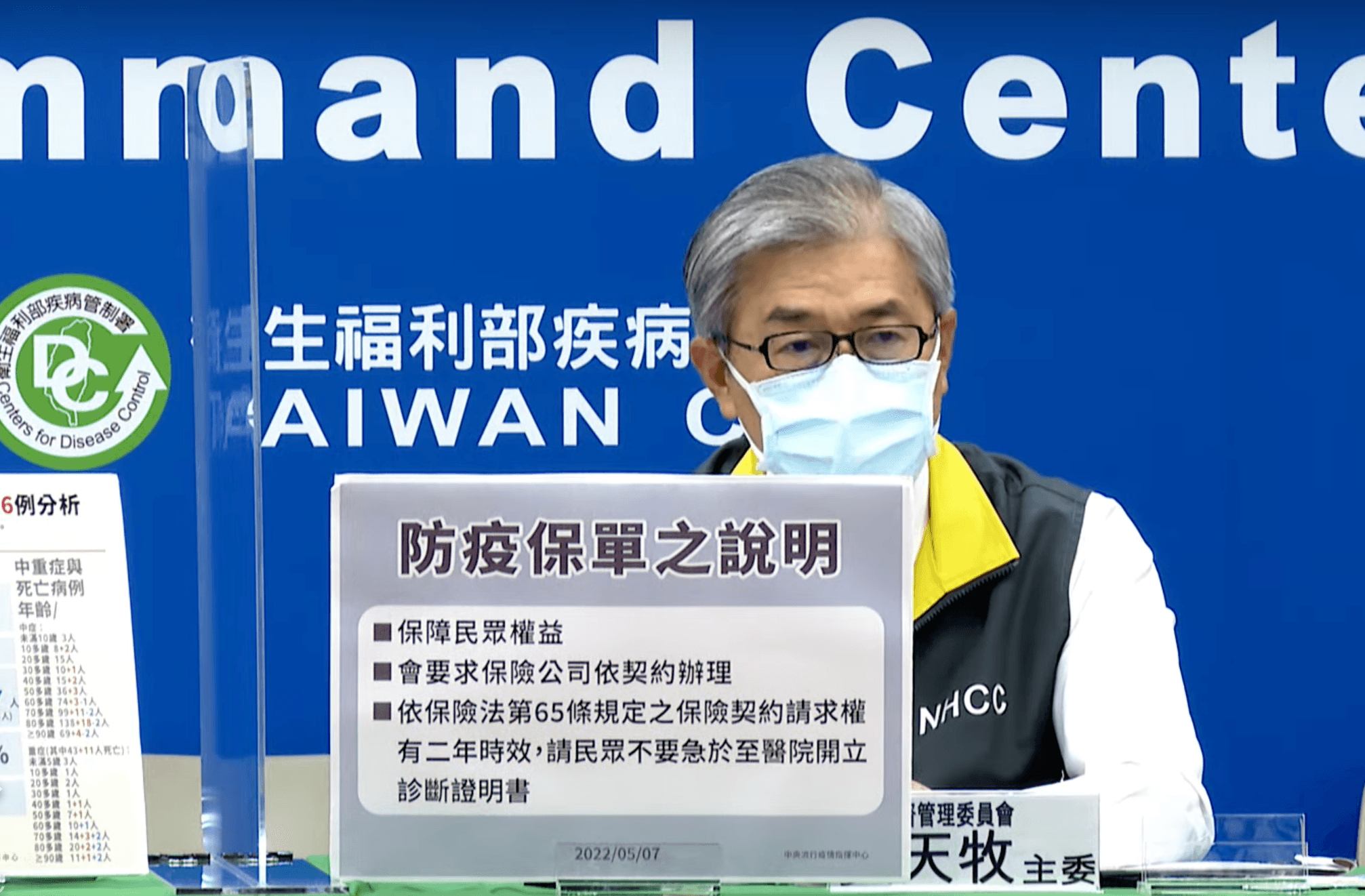 防疫保單爭議不斷,金管會主委黃天牧7日親自出席疫情記者會解釋,針對防疫保單提出3點說明,盼能降低民眾恐慌。